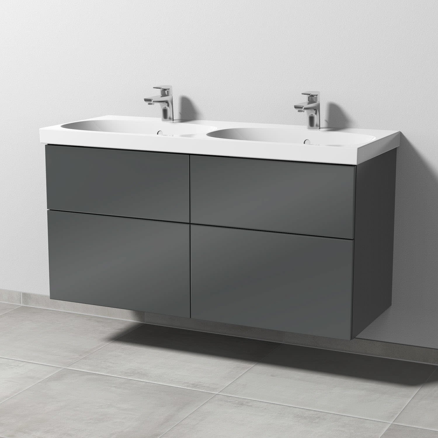 Sanipa 3way Waschtischunterbau für Keramik-Doppelwaschtisch Acanto 120 cm, 4 Auszüge mit Push to open