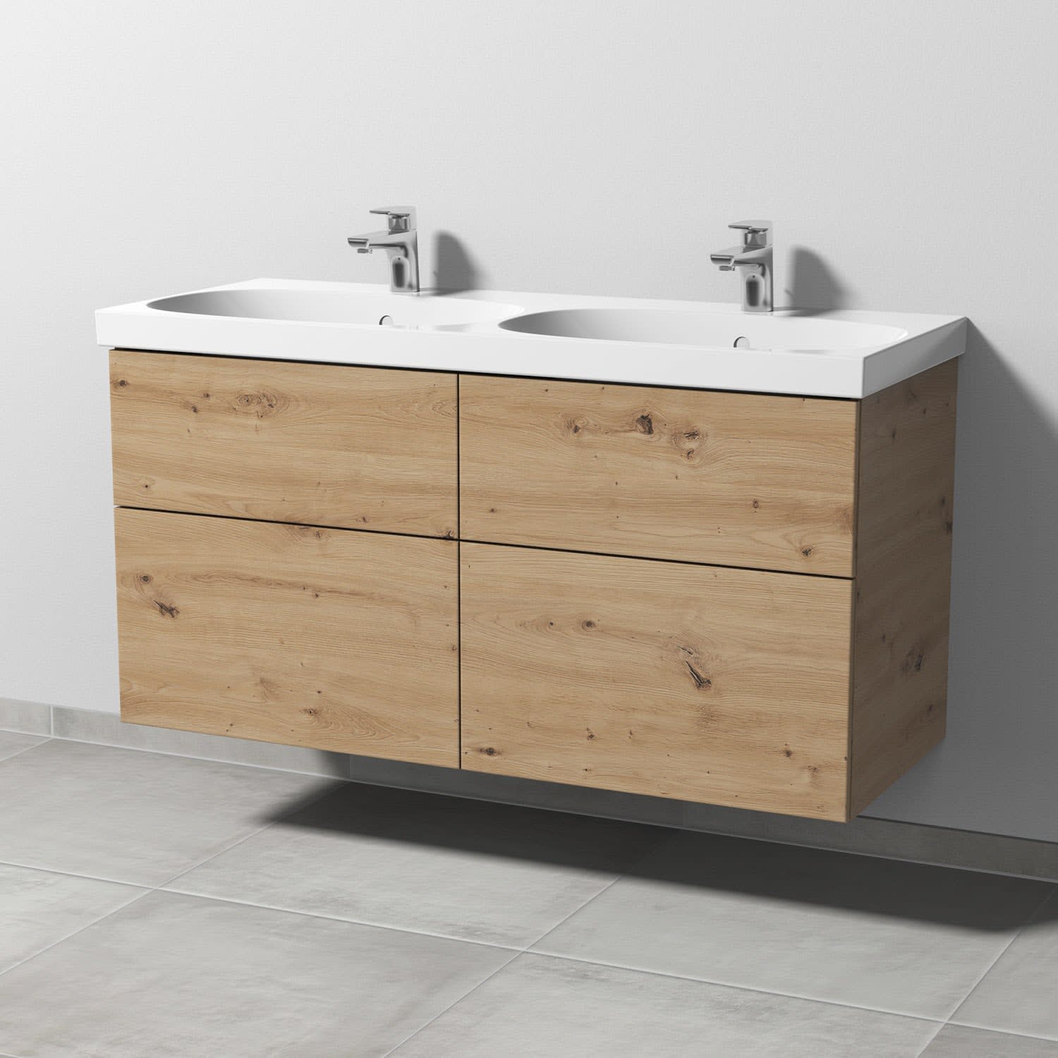 Sanipa 3way Waschtischunterbau für Keramik-Doppelwaschtisch Acanto 120 cm, 4 Auszüge mit Push to open