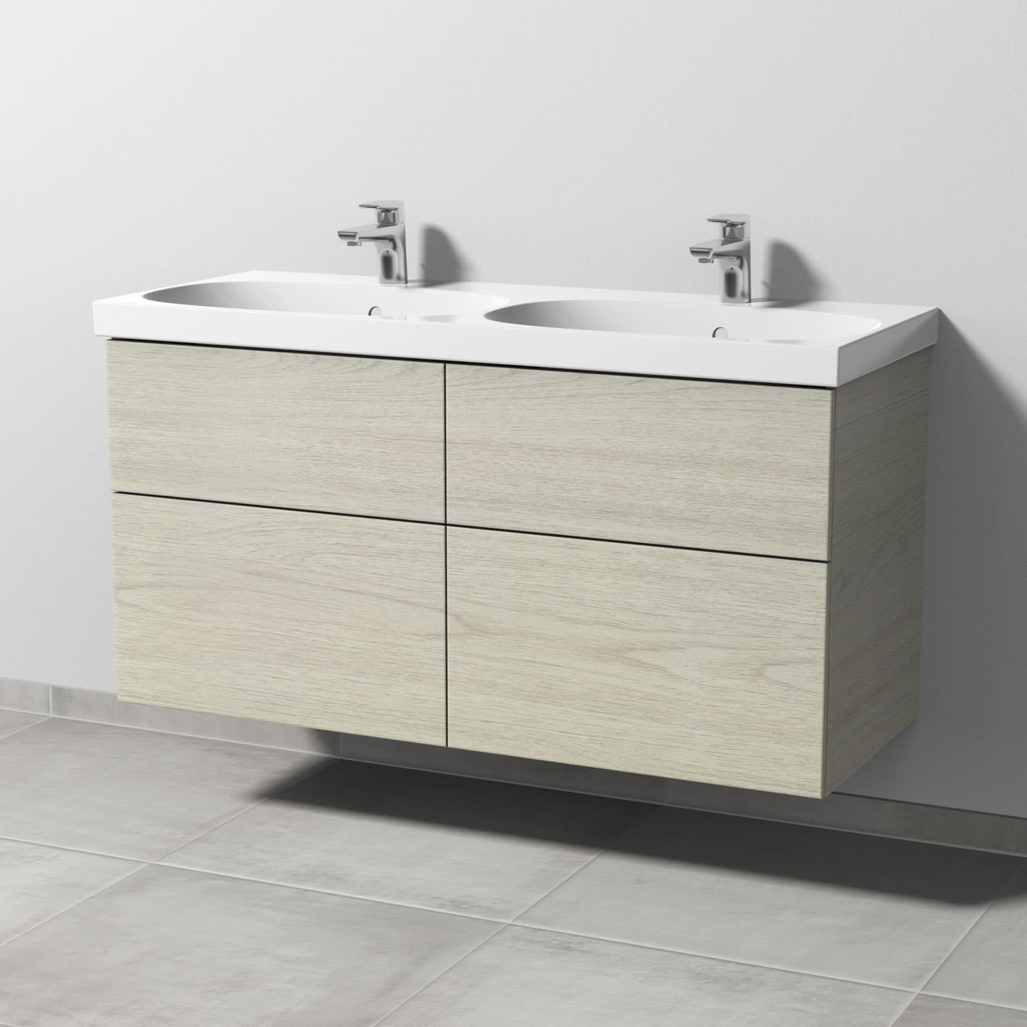 Sanipa 3way Waschtischunterbau für Keramik-Doppelwaschtisch Acanto 120 cm, 4 Auszüge mit Push to open