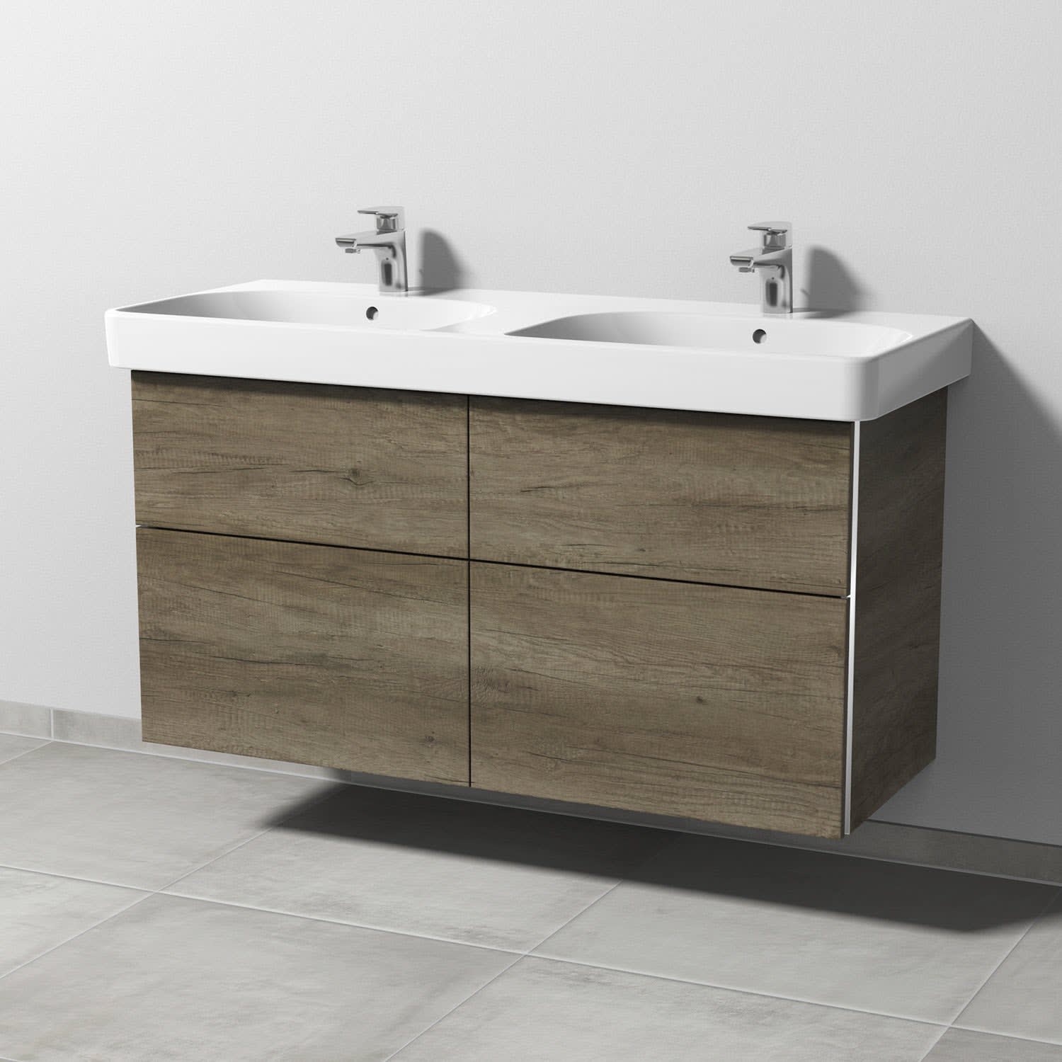 Sanipa 3way Waschtischunterbau für Keramik-Doppelwaschtisch Smyle Square 120 cm, 4 Auszüge mit Griffleisten