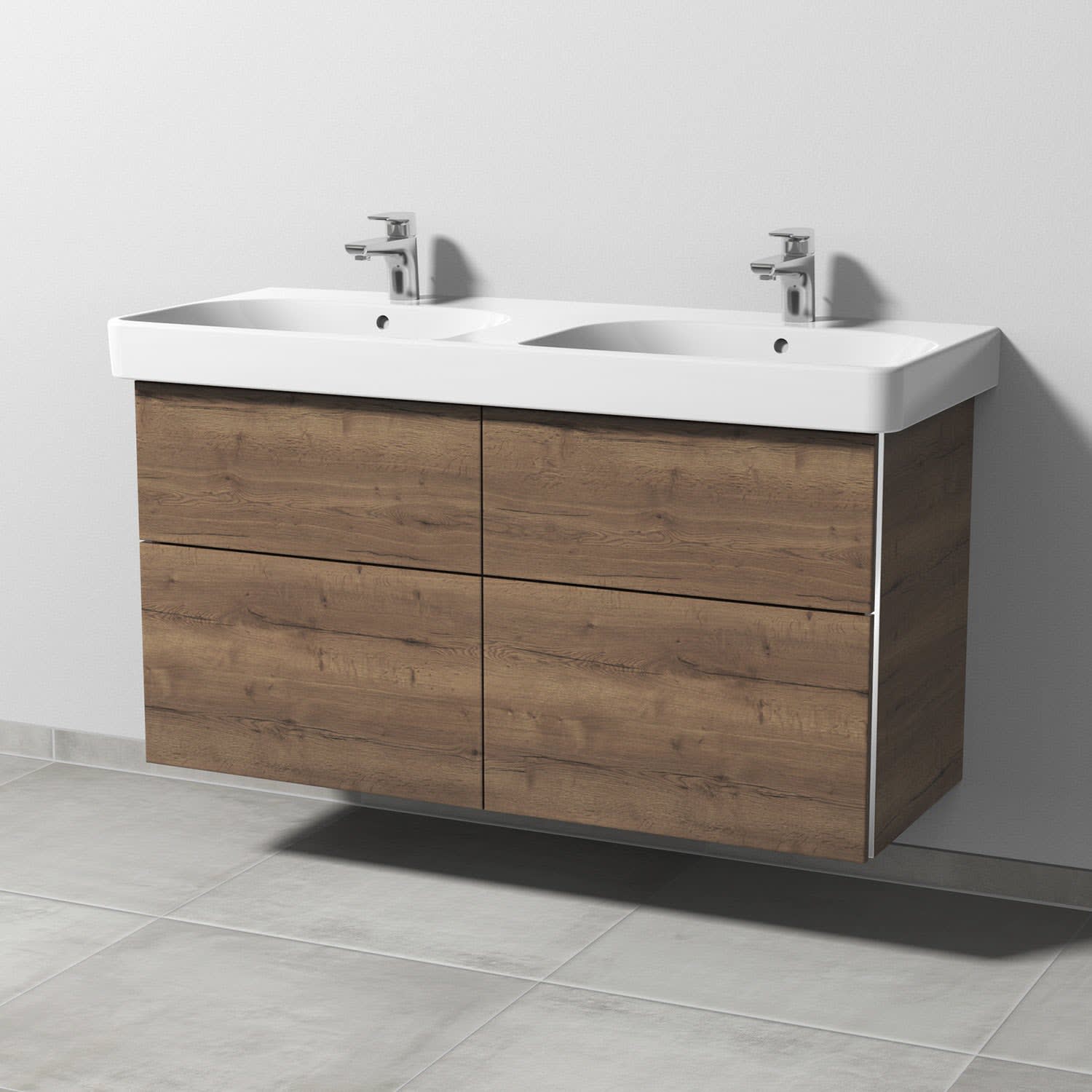 Sanipa 3way Waschtischunterbau für Keramik-Doppelwaschtisch Smyle Square 120 cm, 4 Auszüge mit Griffleisten
