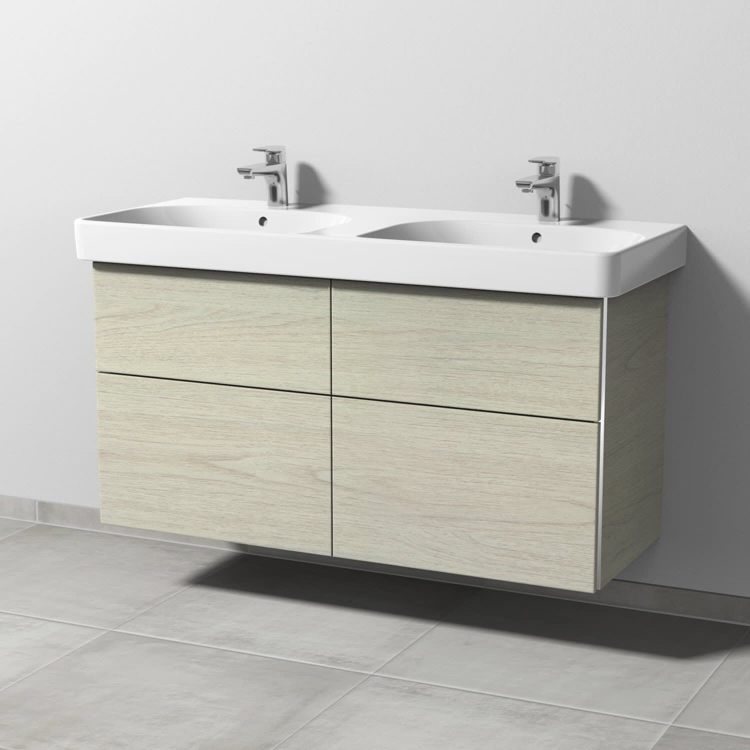Sanipa 3way Waschtischunterbau für Keramik-Doppelwaschtisch Smyle Square 120 cm, 4 Auszüge mit Griffleisten