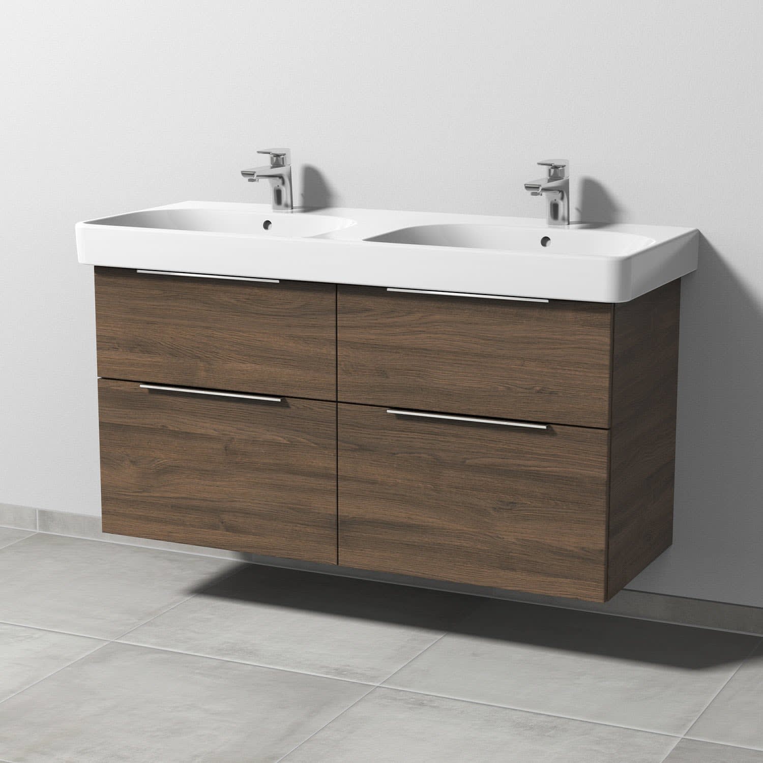 Sanipa 3way Waschtischunterbau für Keramik-Doppelwaschtisch Smyle Square 120 cm, 4 Auszüge mit Aufsatzgriff
