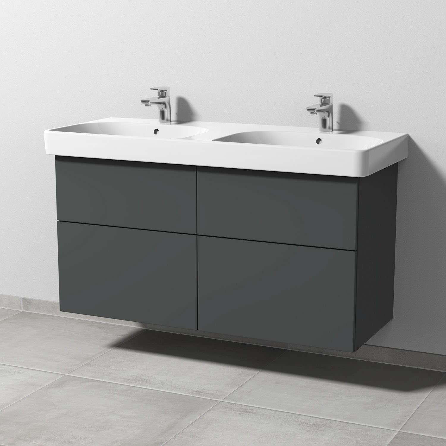 Sanipa 3way Waschtischunterbau für Keramik-Doppelwaschtisch Smyle Square 120 cm, 4 Auszüge mit Push to open