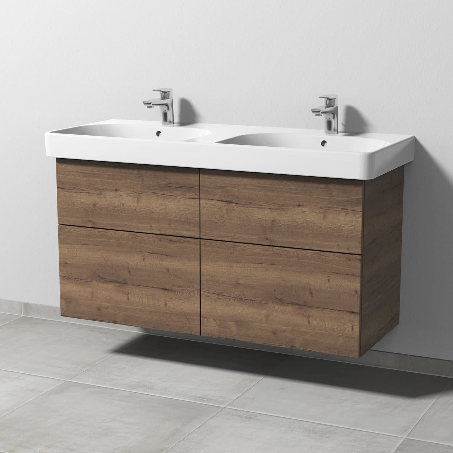 Sanipa 3way Waschtischunterbau für Keramik-Doppelwaschtisch Smyle Square 120 cm, 4 Auszüge mit Push to open