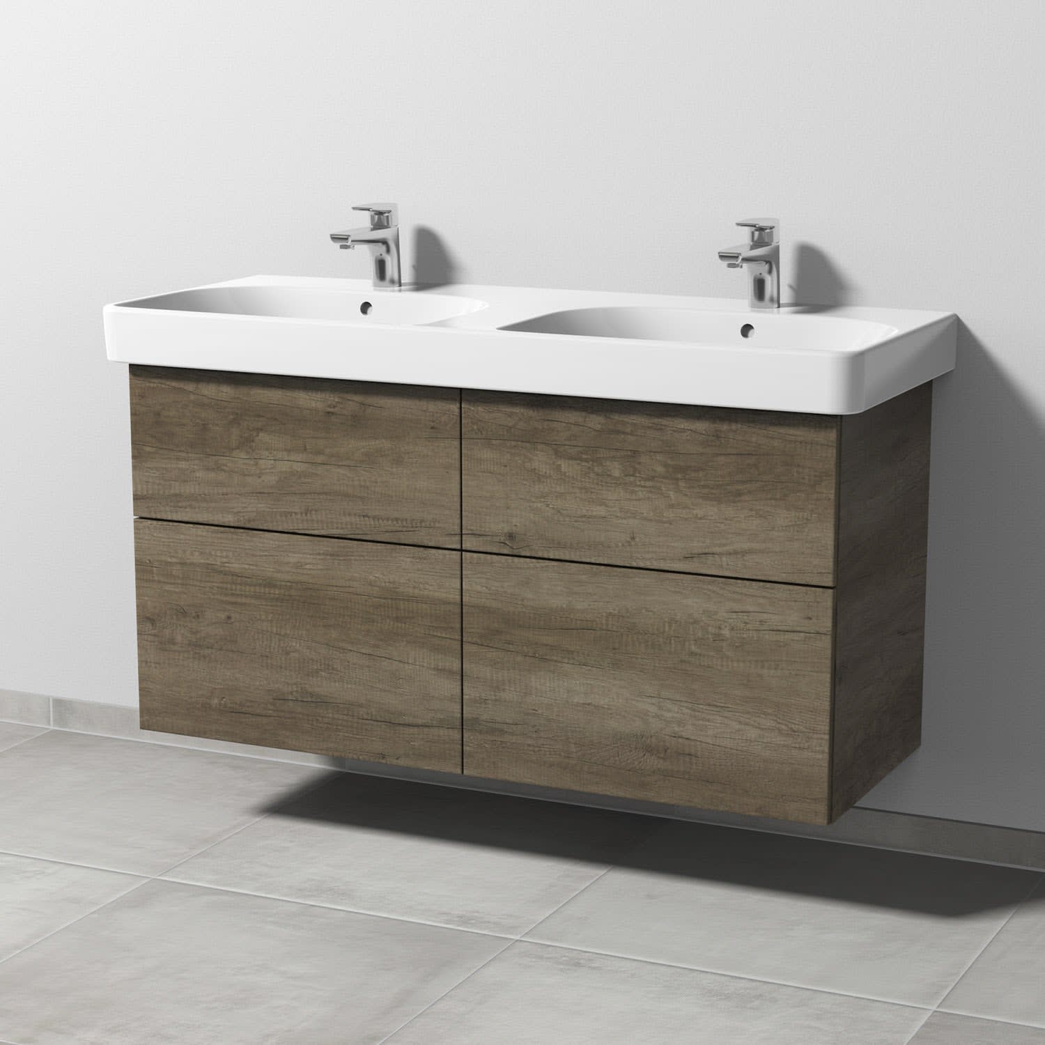 Sanipa 3way Waschtischunterbau für Keramik-Doppelwaschtisch Smyle Square 120 cm, 4 Auszüge mit Push to open