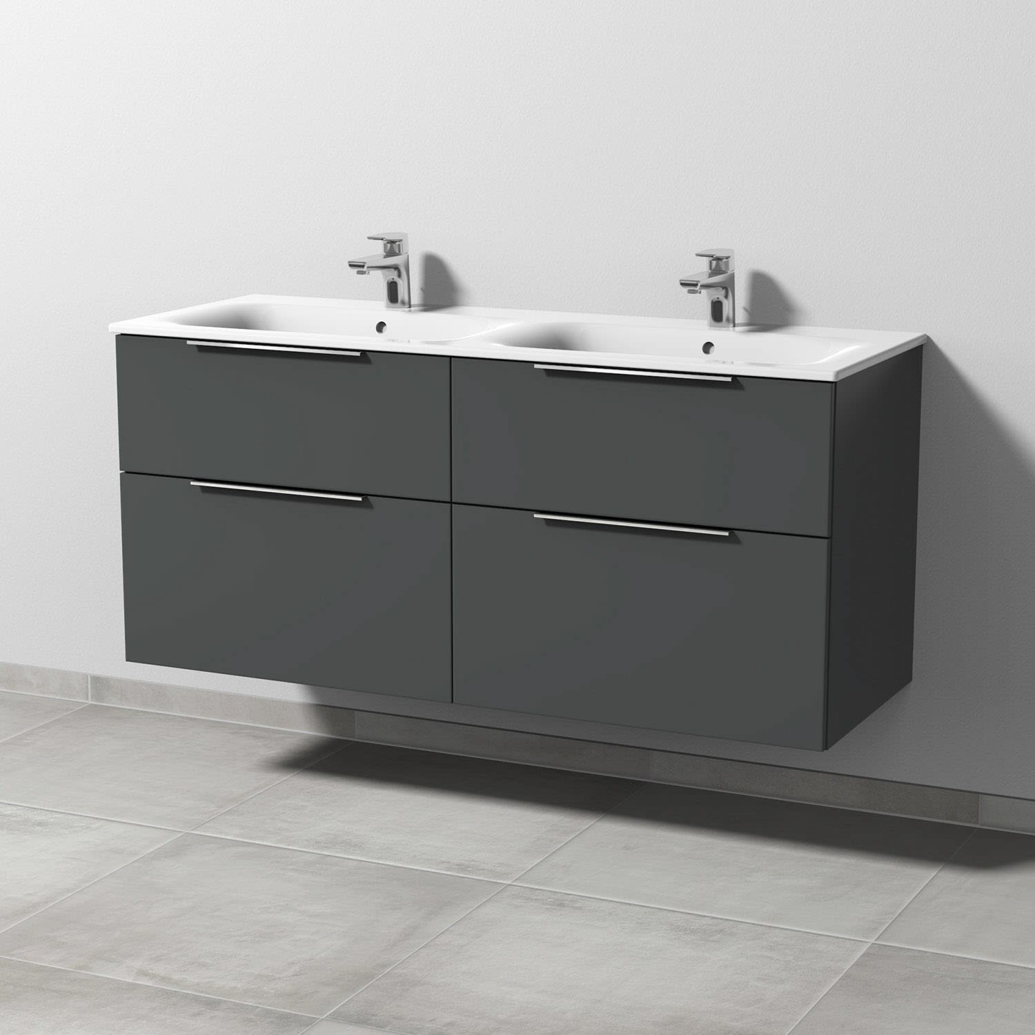Sanipa 3way Waschtischunterbau für Keramik-Doppelwaschtisch Renova Plan Slim 130 cm, 4 Auszüge mit Aufsatzgriff