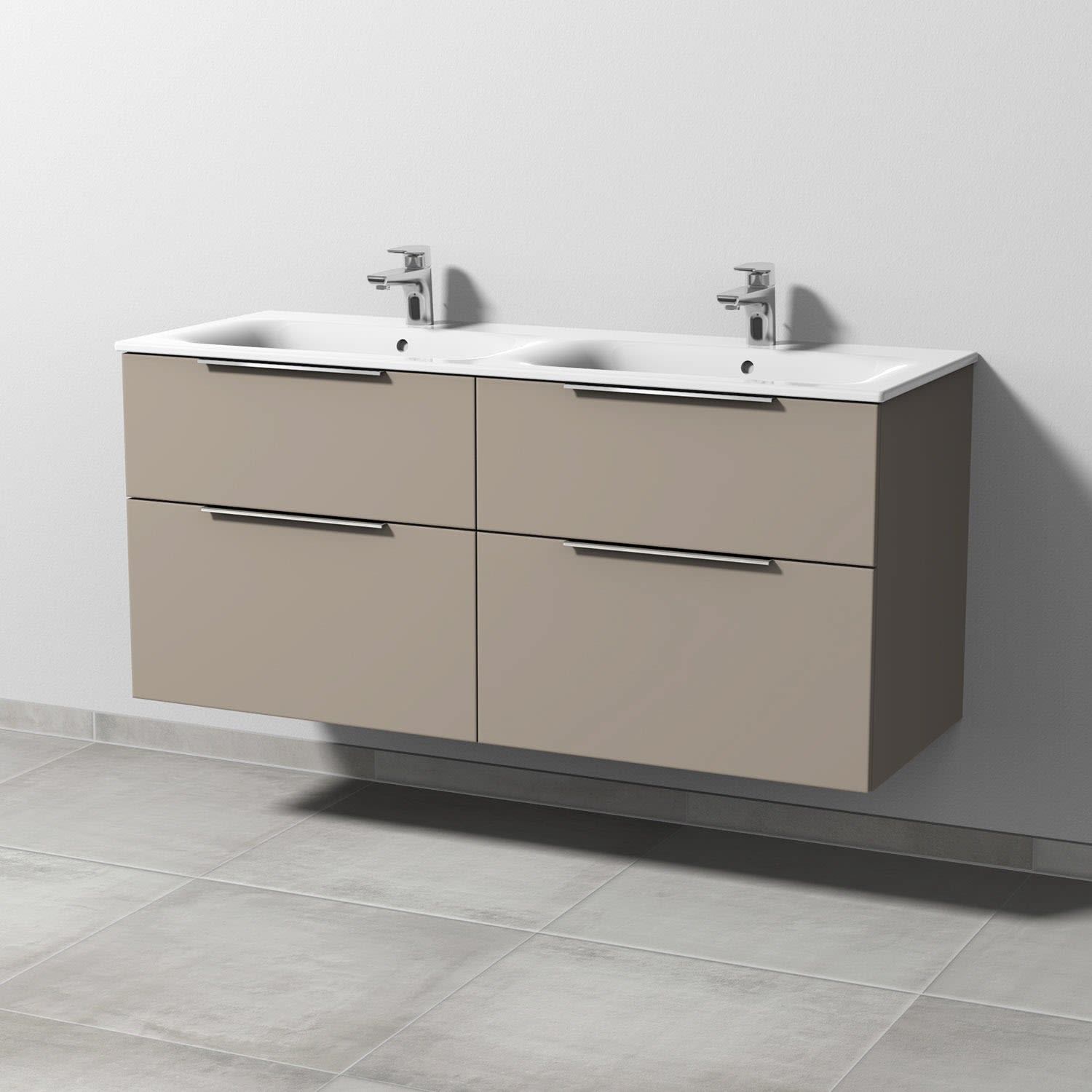 Sanipa 3way Waschtischunterbau für Keramik-Doppelwaschtisch Renova Plan Slim 130 cm, 4 Auszüge mit Aufsatzgriff