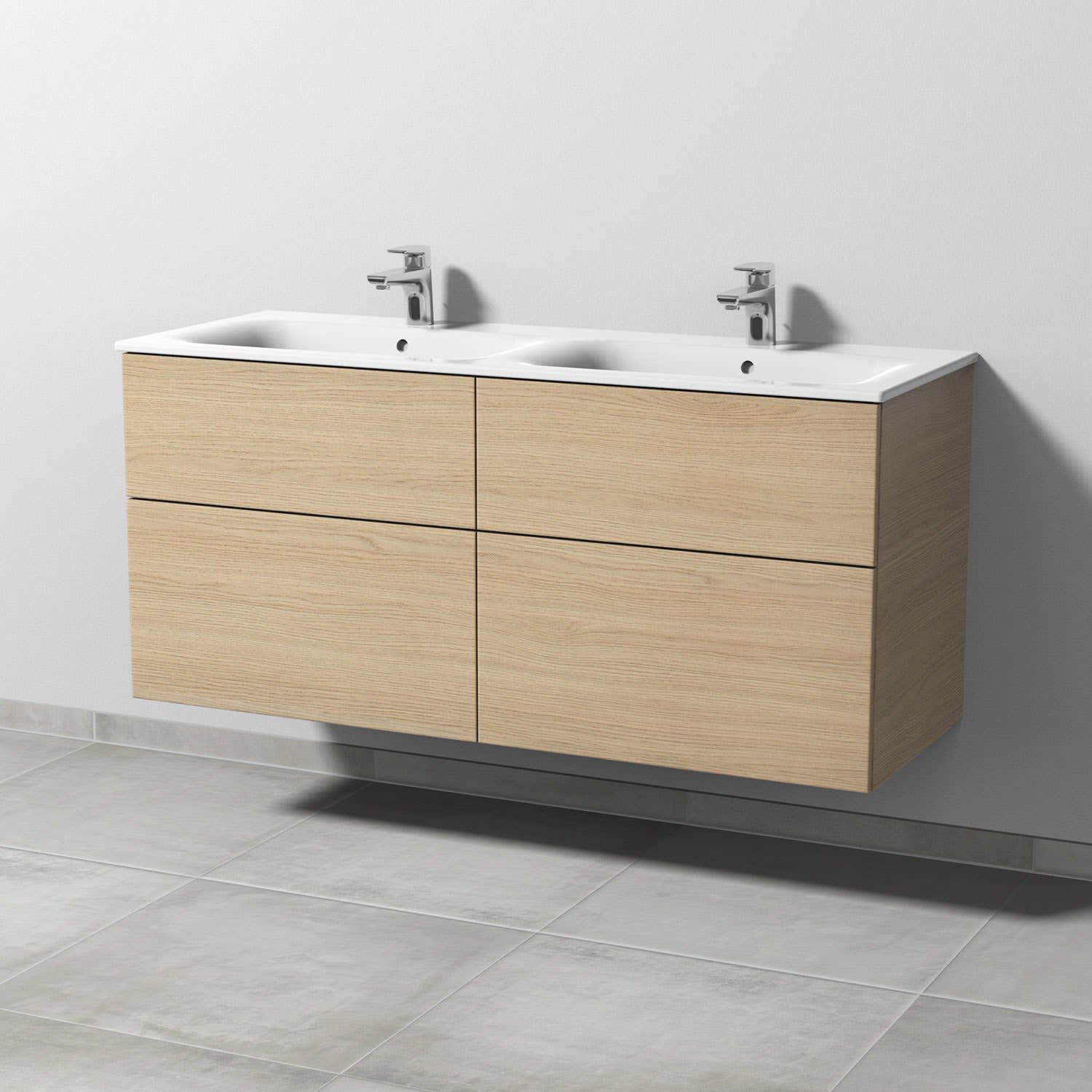 Sanipa 3way Waschtischunterbau für Keramik-Doppelwaschtisch Renova Plan Slim 130 cm, 4 Auszüge mit Push to open