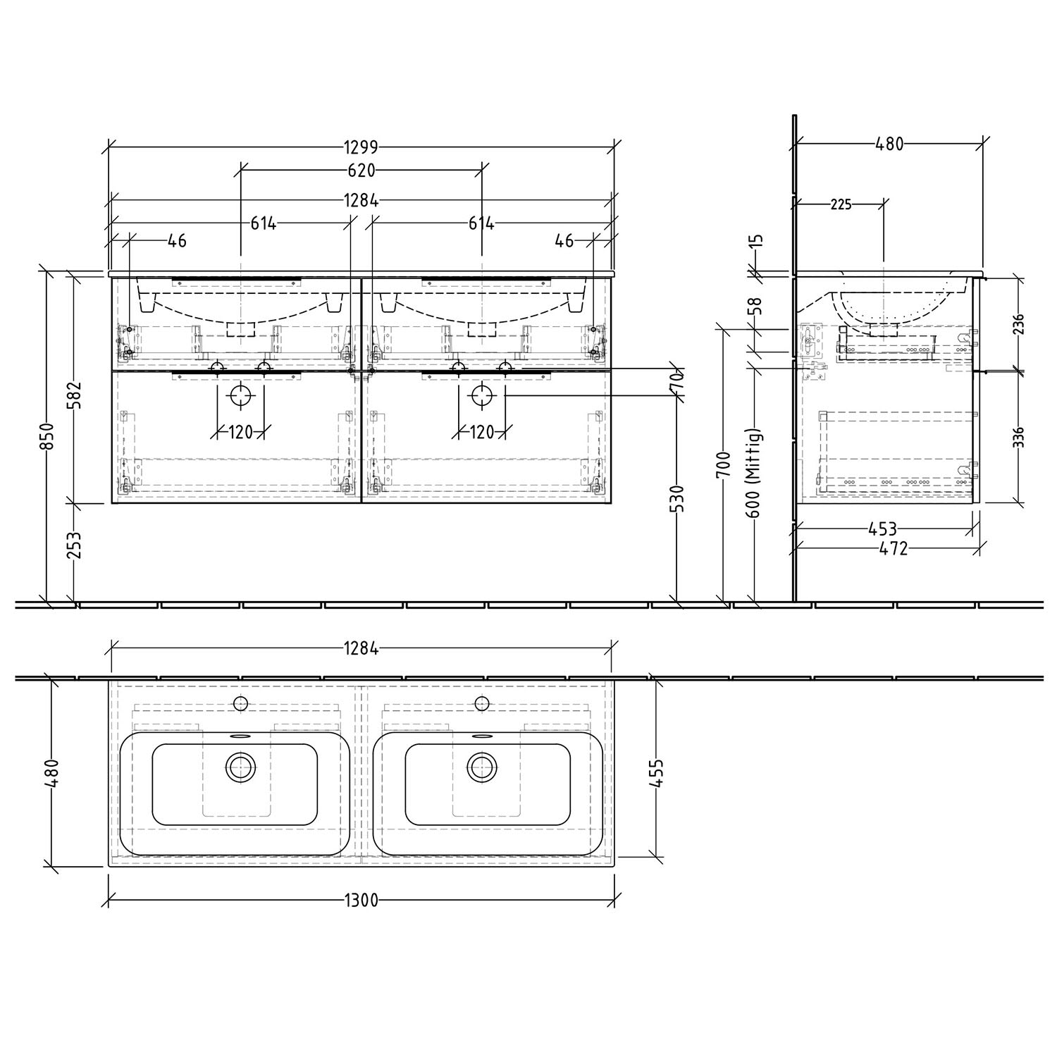- obere Auszüge mit eckigem Siphonausschnitt