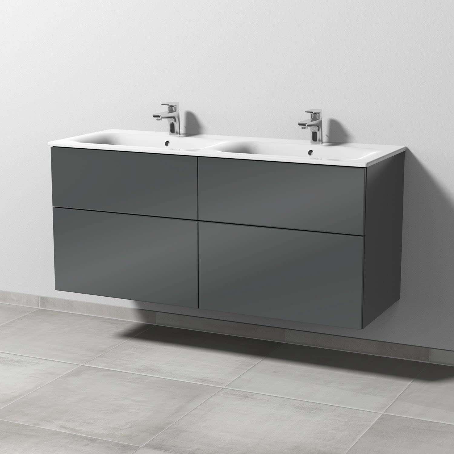 Sanipa 3way Waschtischunterbau für Keramik-Doppelwaschtisch Renova Plan Slim 130 cm, 4 Auszüge mit Push to open
