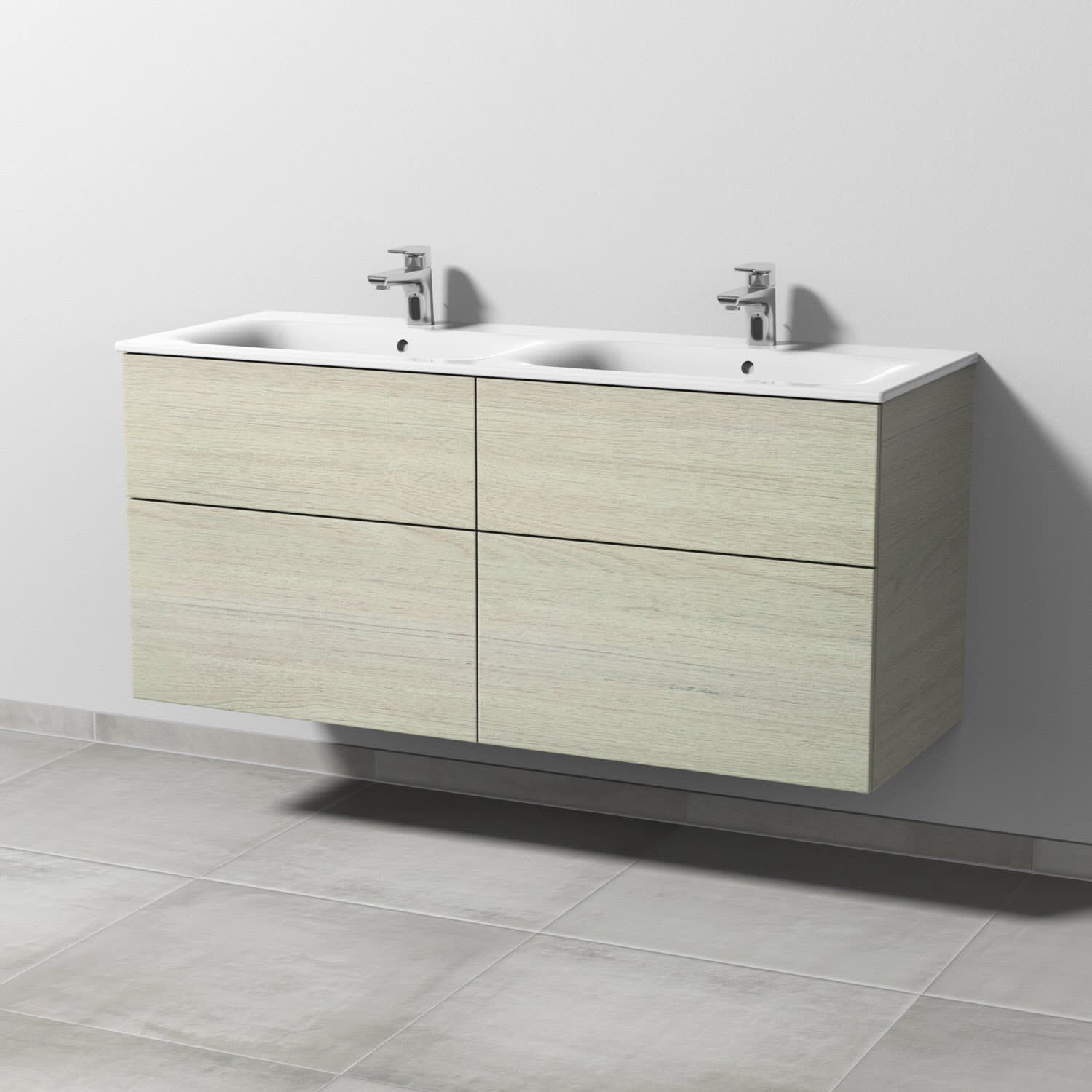 Sanipa 3way Waschtischunterbau für Keramik-Doppelwaschtisch Renova Plan Slim 130 cm, 4 Auszüge mit Push to open