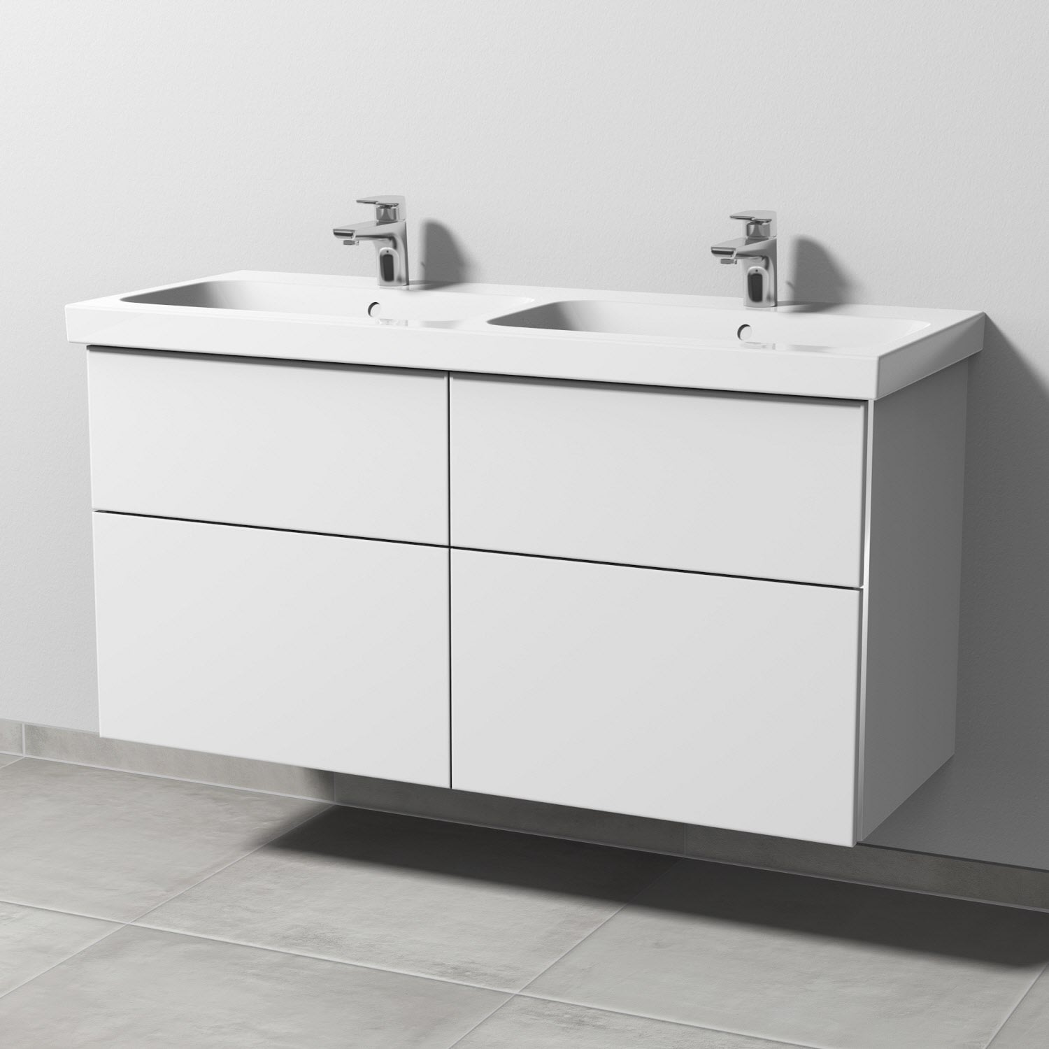 Sanipa 3way Waschtischunterbau für Keramik-Doppelwaschtisch iCon Light 120 cm, 4 Auszüge mit Griffleisten