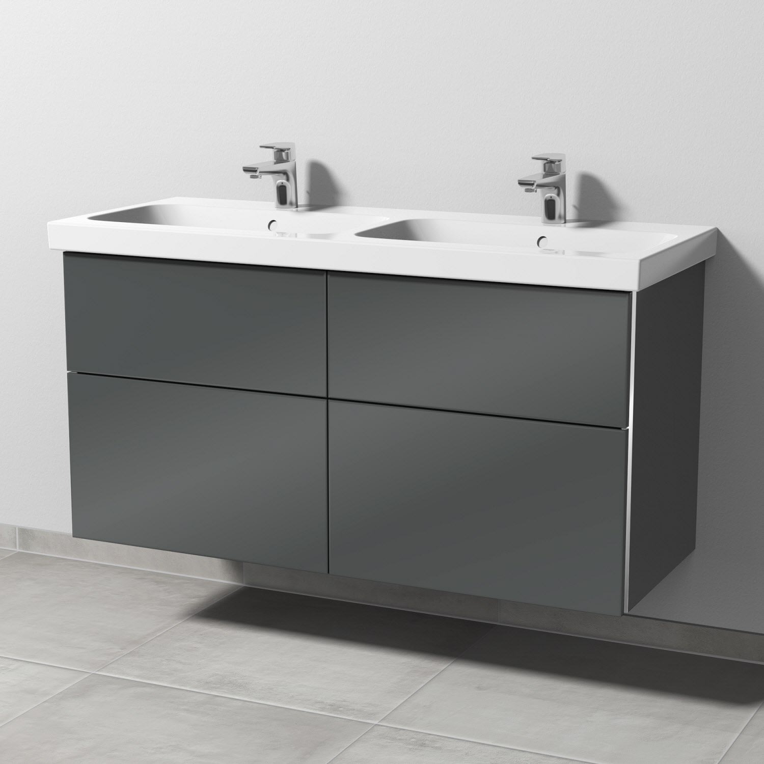 Sanipa 3way Waschtischunterbau für Keramik-Doppelwaschtisch iCon Light 120 cm, 4 Auszüge mit Griffleisten