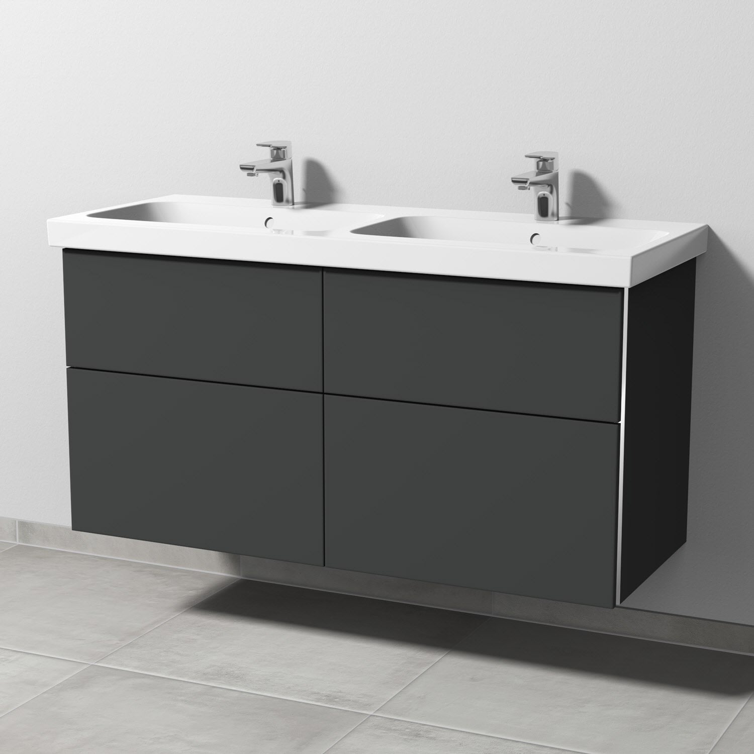 Sanipa 3way Waschtischunterbau für Keramik-Doppelwaschtisch iCon Light 120 cm, 4 Auszüge mit Griffleisten