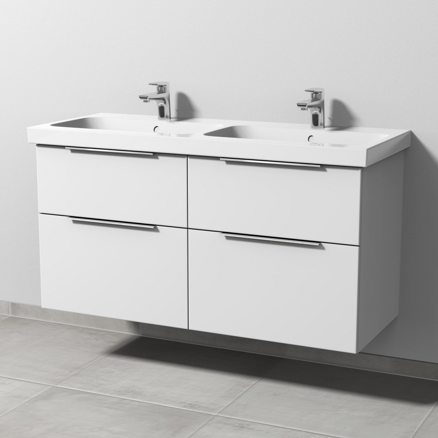 Sanipa 3way Waschtischunterbau für Keramik-Doppelwaschtisch iCon Light 120 cm, 4 Auszüge mit Aufsatzgriff