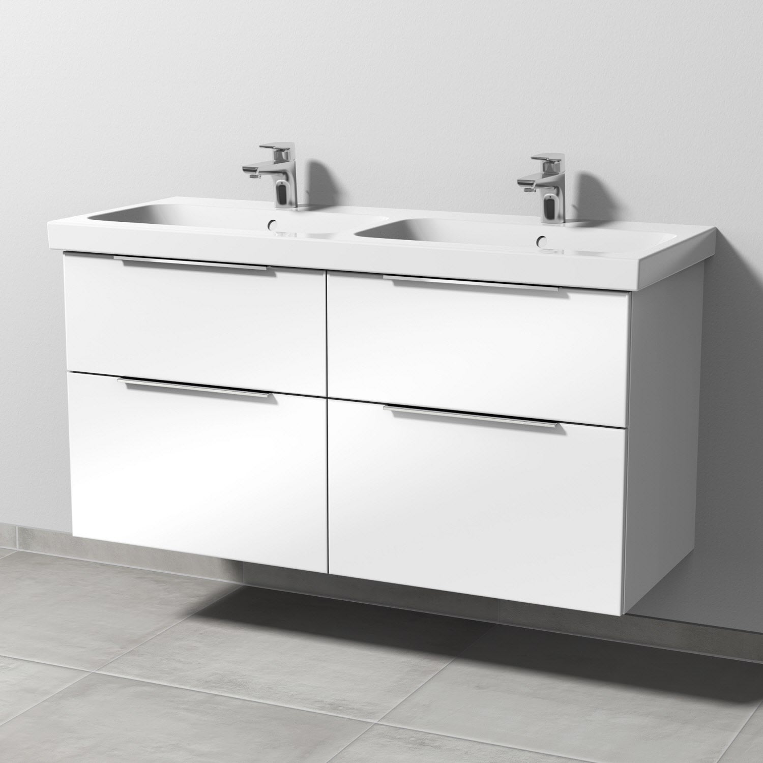 Sanipa 3way Waschtischunterbau für Keramik-Doppelwaschtisch iCon Light 120 cm, 4 Auszüge mit Aufsatzgriff