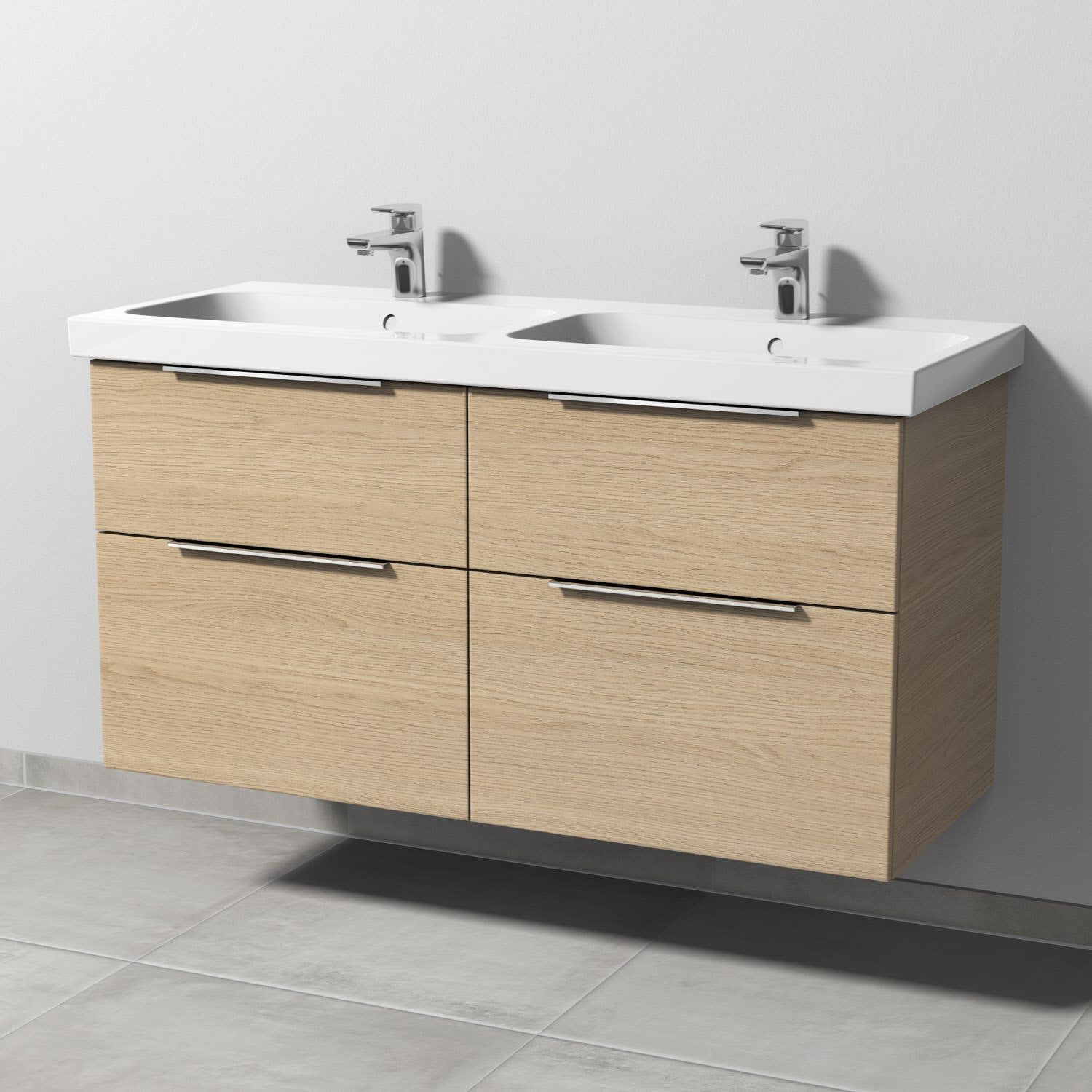 Sanipa 3way Waschtischunterbau für Keramik-Doppelwaschtisch iCon Light 120 cm, 4 Auszüge mit Aufsatzgriff