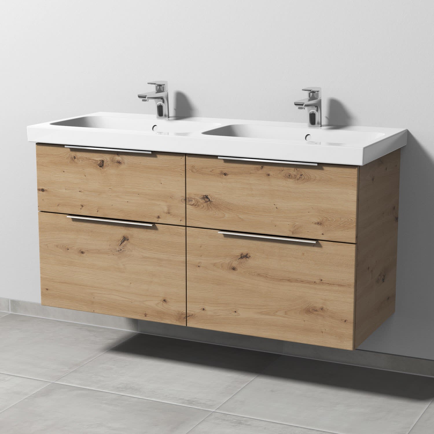 Sanipa 3way Waschtischunterbau für Keramik-Doppelwaschtisch iCon Light 120 cm, 4 Auszüge mit Aufsatzgriff