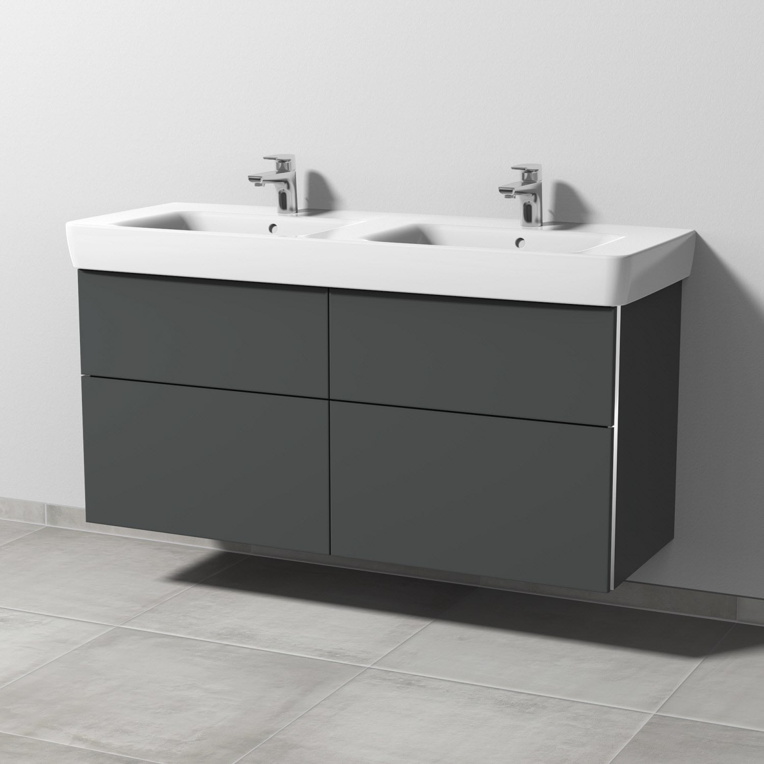 Sanipa 3way Waschtischunterbau für Keramik-Doppelwaschtisch Renova Plan 130 cm, 4 Auszüge mit Griffleisten