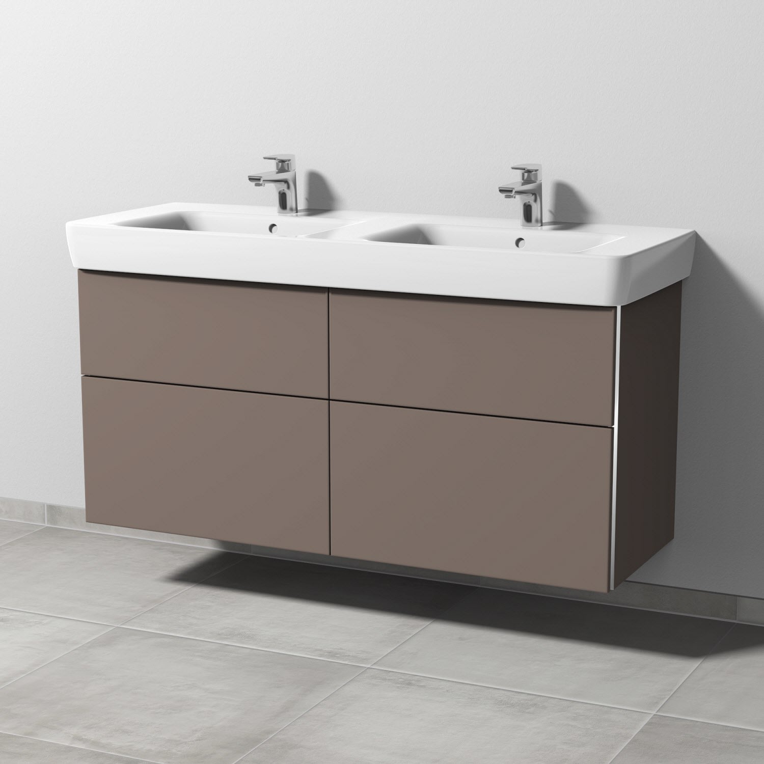 Sanipa 3way Waschtischunterbau für Keramik-Doppelwaschtisch Renova Plan 130 cm, 4 Auszüge mit Griffleisten