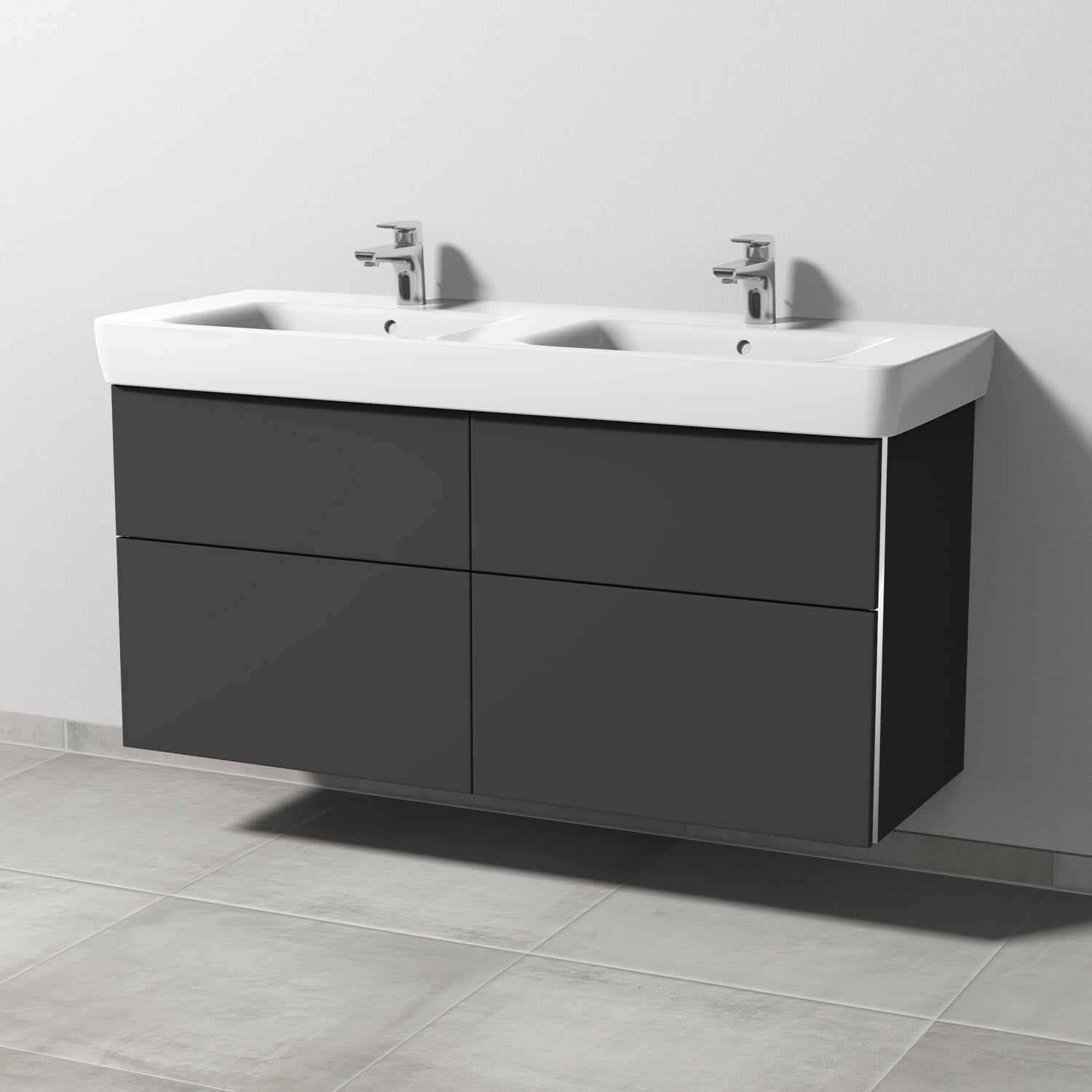 Sanipa 3way Waschtischunterbau für Keramik-Doppelwaschtisch Renova Plan 130 cm, 4 Auszüge mit Griffleisten