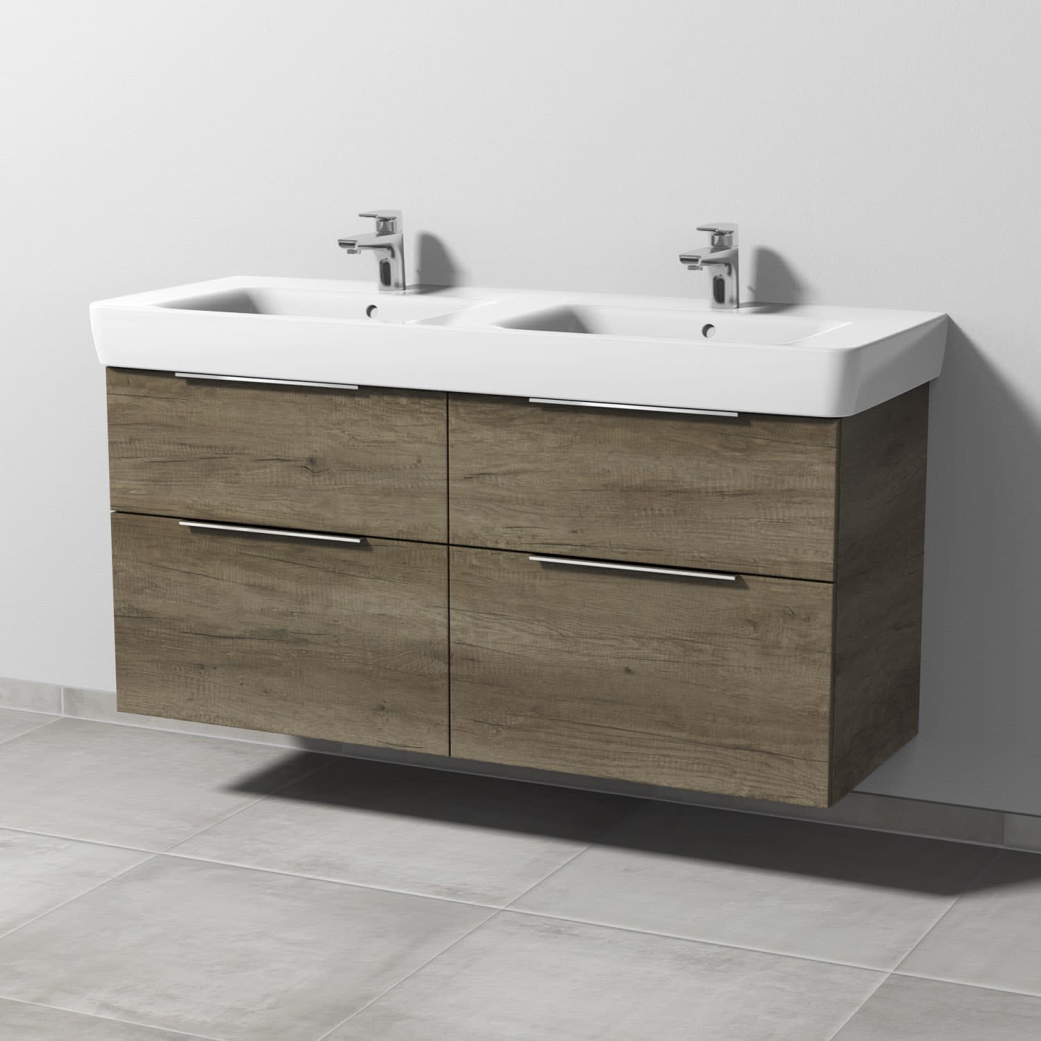 Sanipa 3way Waschtischunterbau für Keramik-Doppelwaschtisch Renova Plan 130 cm, 4 Auszüge mit Aufsatzgriff