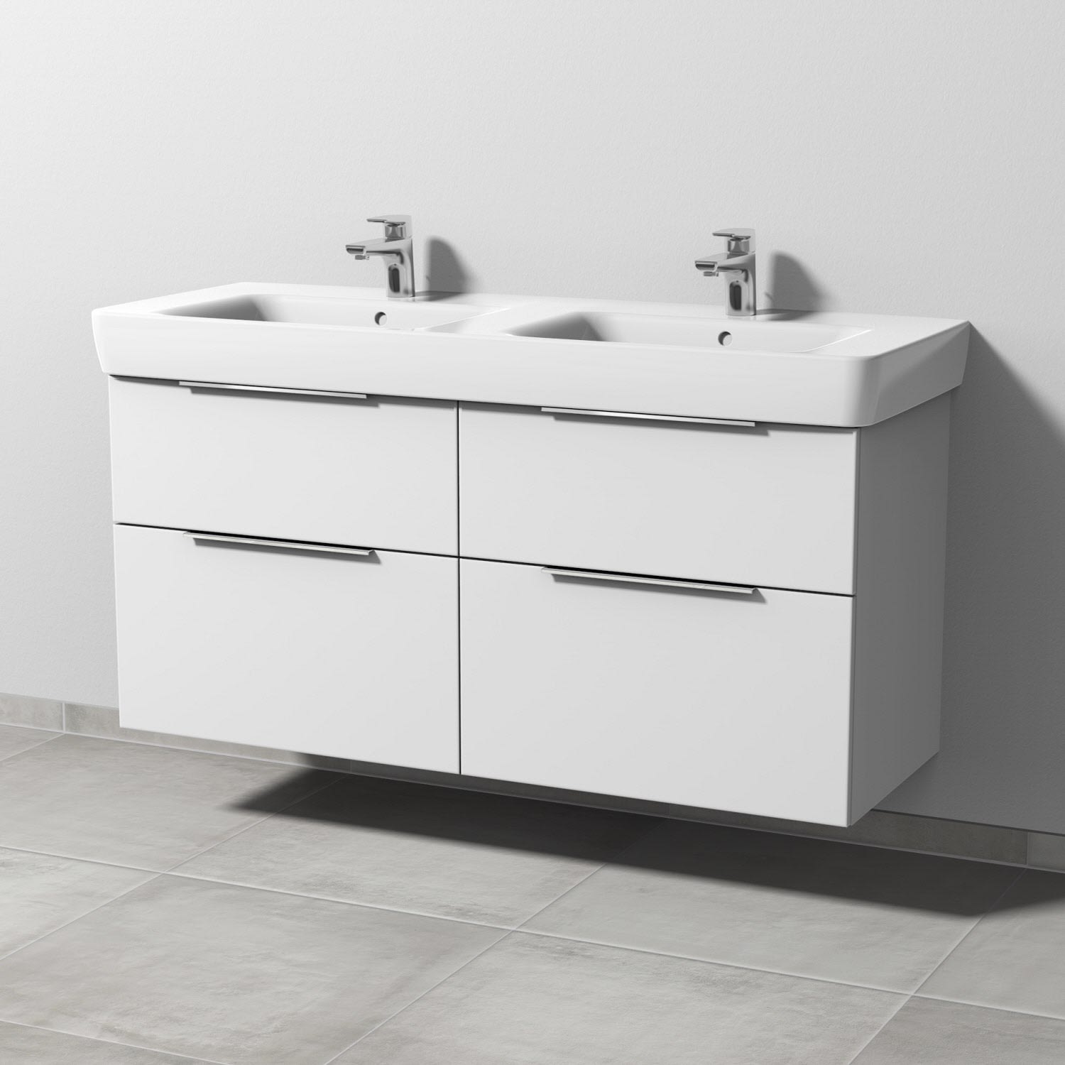 Sanipa 3way Waschtischunterbau für Keramik-Doppelwaschtisch Renova Plan 130 cm, 4 Auszüge mit Aufsatzgriff