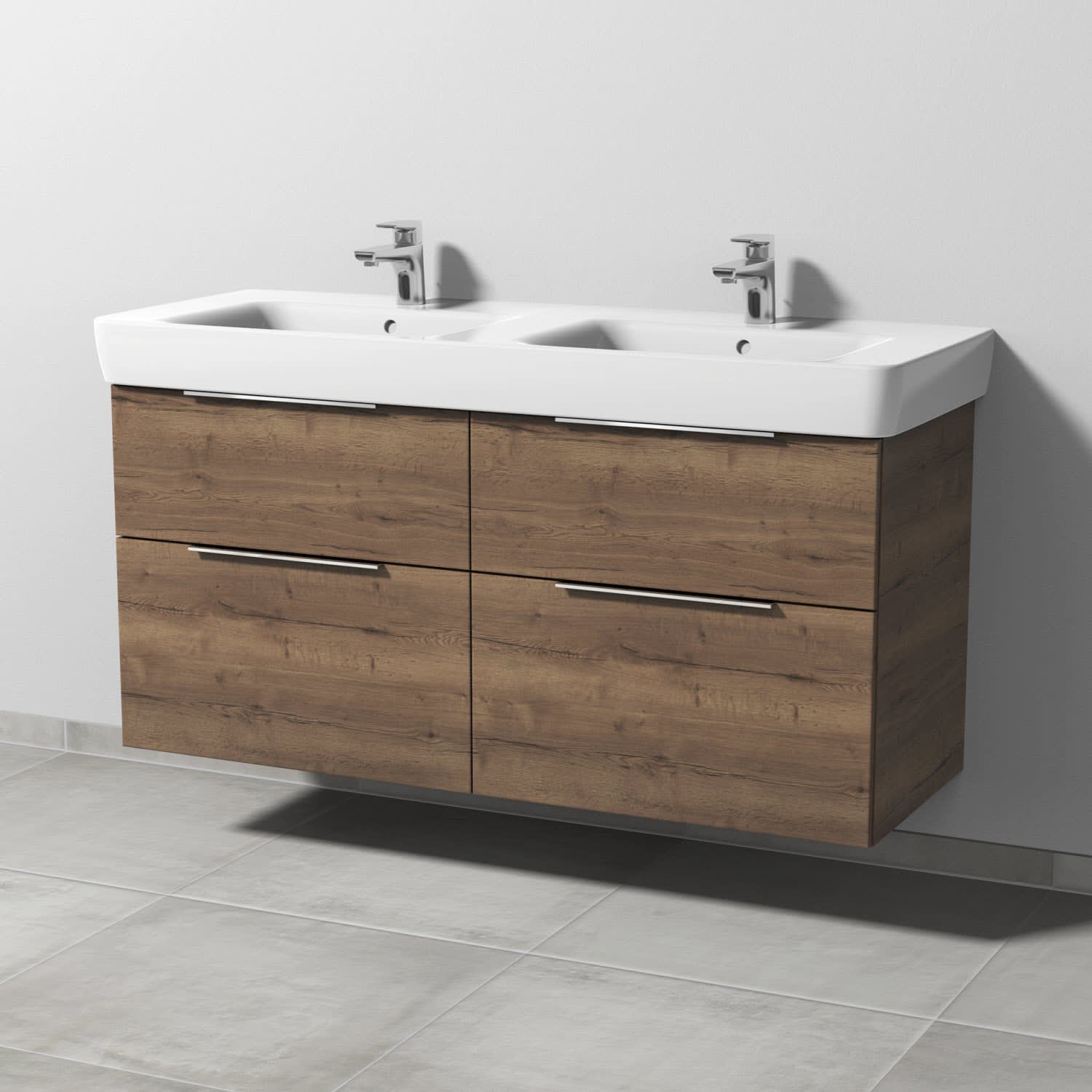 Sanipa 3way Waschtischunterbau für Keramik-Doppelwaschtisch Renova Plan 130 cm, 4 Auszüge mit Aufsatzgriff