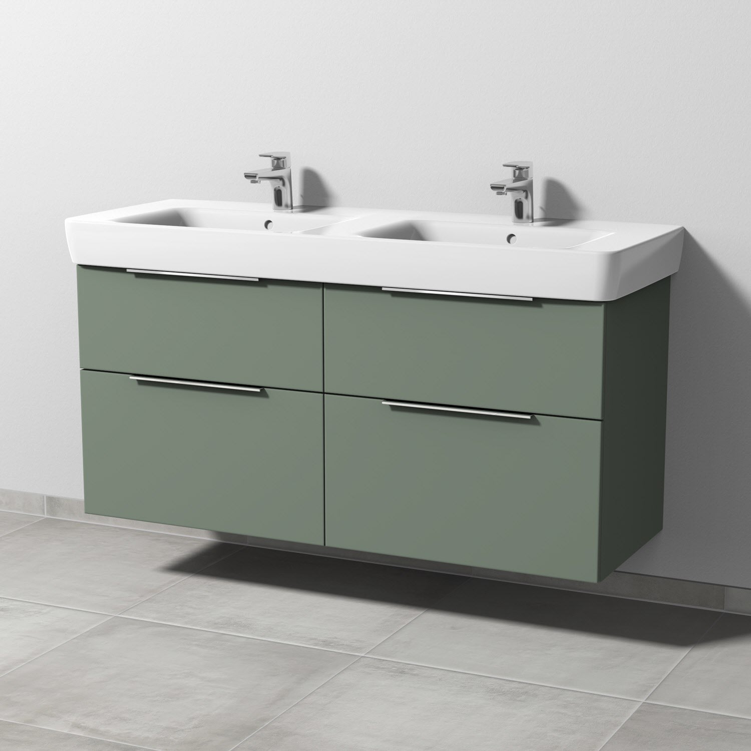 Sanipa 3way Waschtischunterbau für Keramik-Doppelwaschtisch Renova Plan 130 cm, 4 Auszüge mit Aufsatzgriff