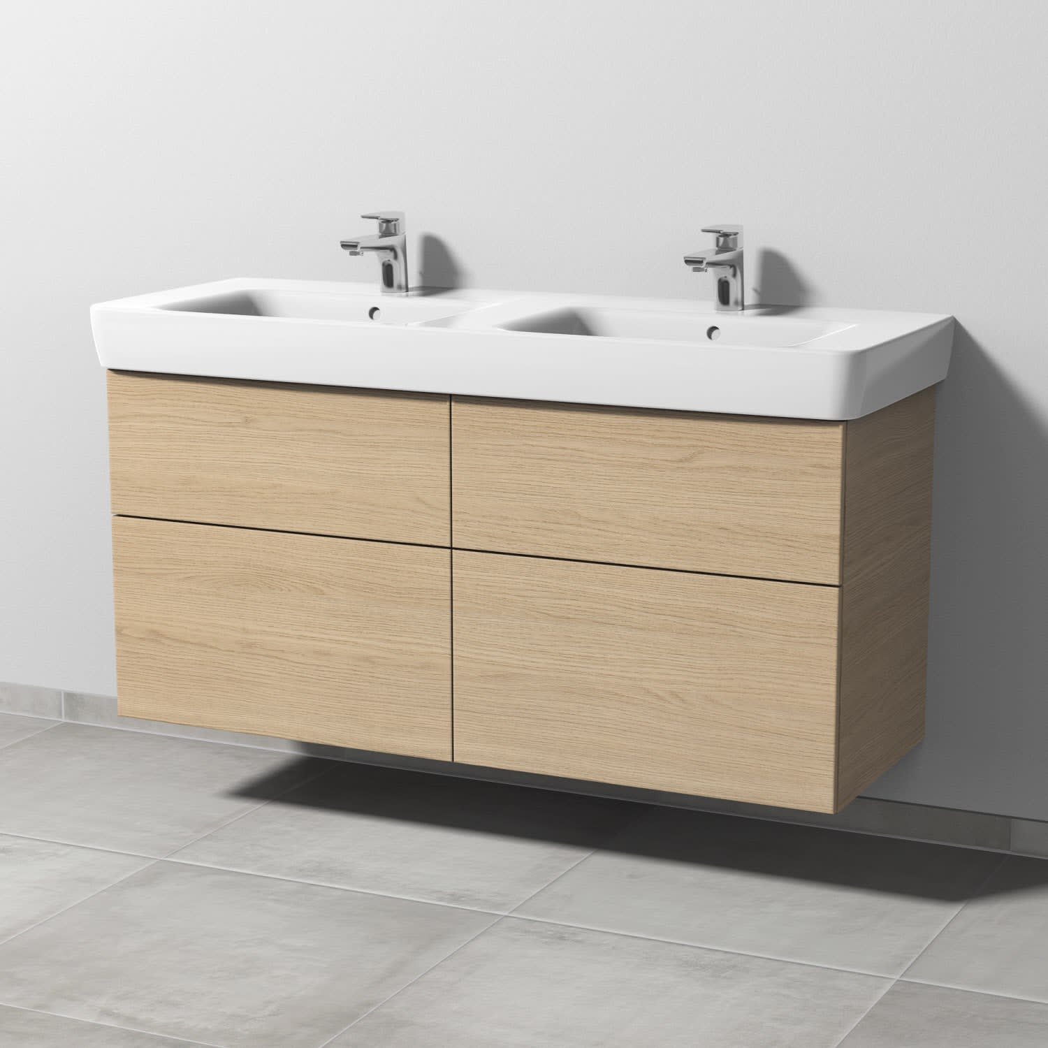 Sanipa 3way Waschtischunterbau für Keramik-Doppelwaschtisch Renova Plan 130 cm, 4 Auszüge mit Push to open