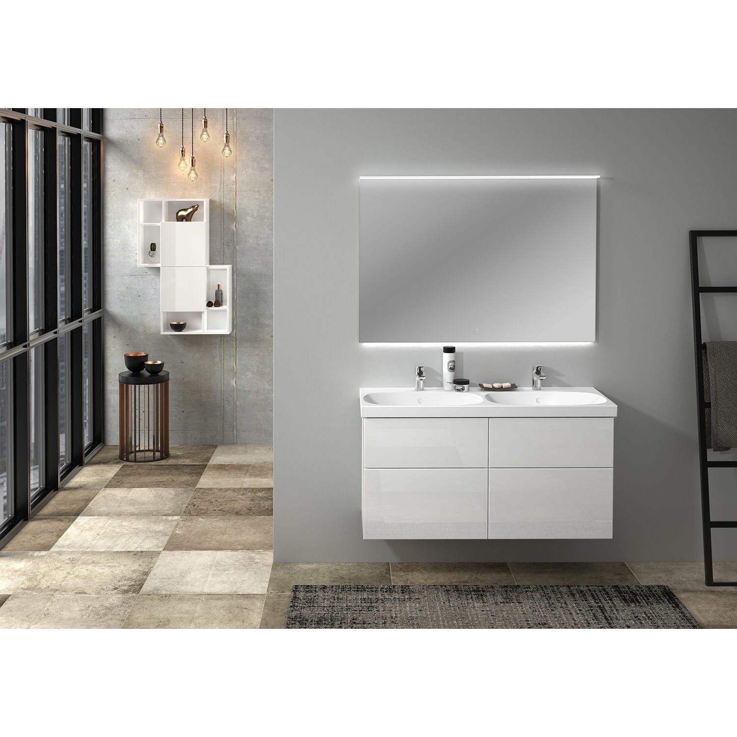 Sanipa 3way Waschtischunterbau für Keramik-Doppelwaschtisch Acanto 120 cm, 4 Auszüge mit Griffleisten