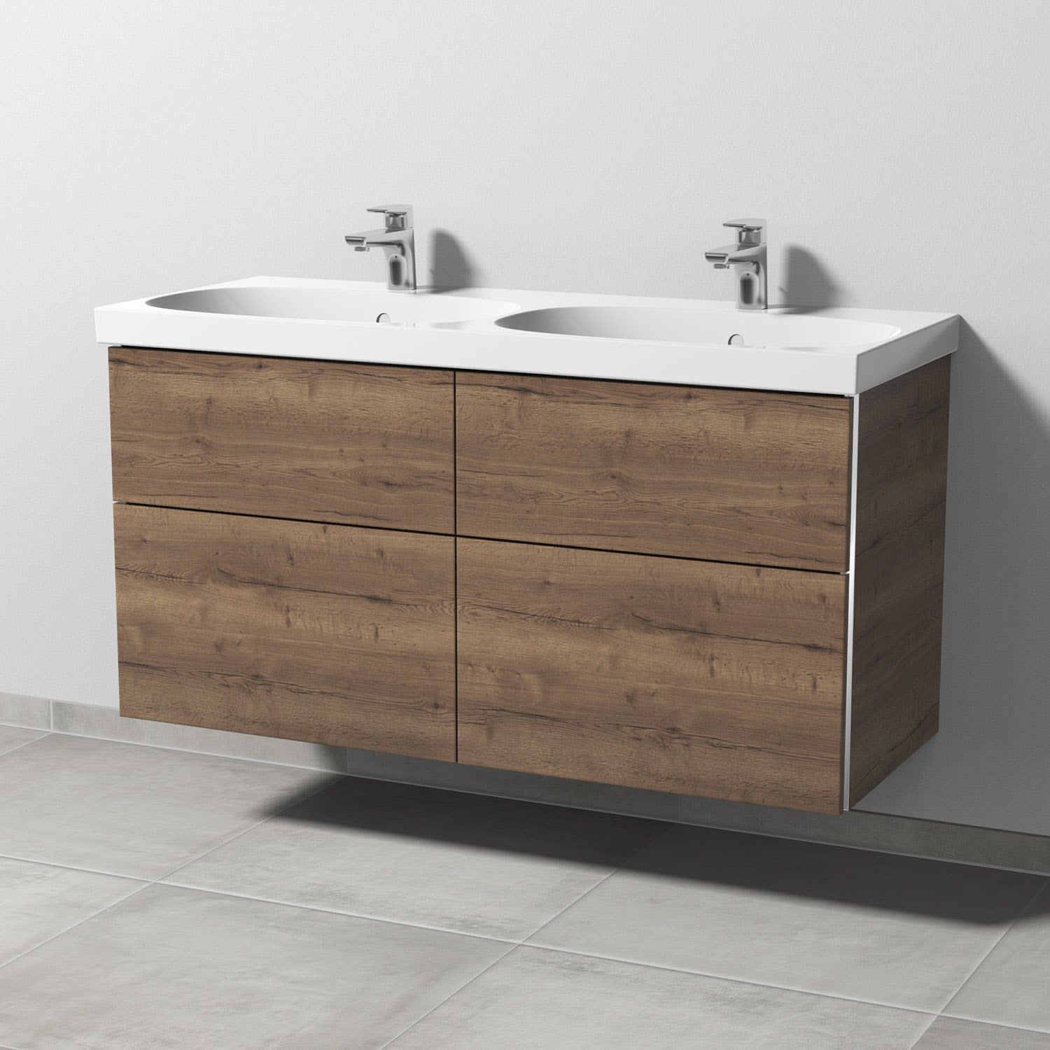 Sanipa 3way Waschtischunterbau für Keramik-Doppelwaschtisch Acanto 120 cm, 4 Auszüge mit Griffleisten