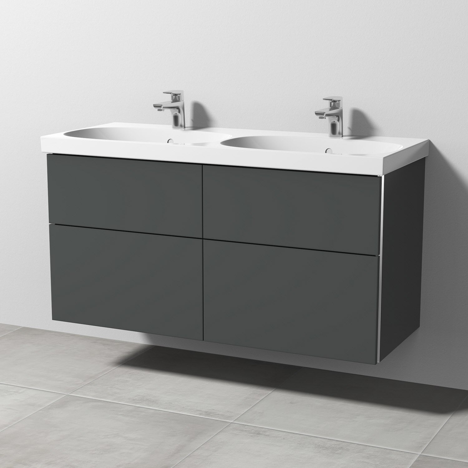 Sanipa 3way Waschtischunterbau für Keramik-Doppelwaschtisch Acanto 120 cm, 4 Auszüge mit Griffleisten