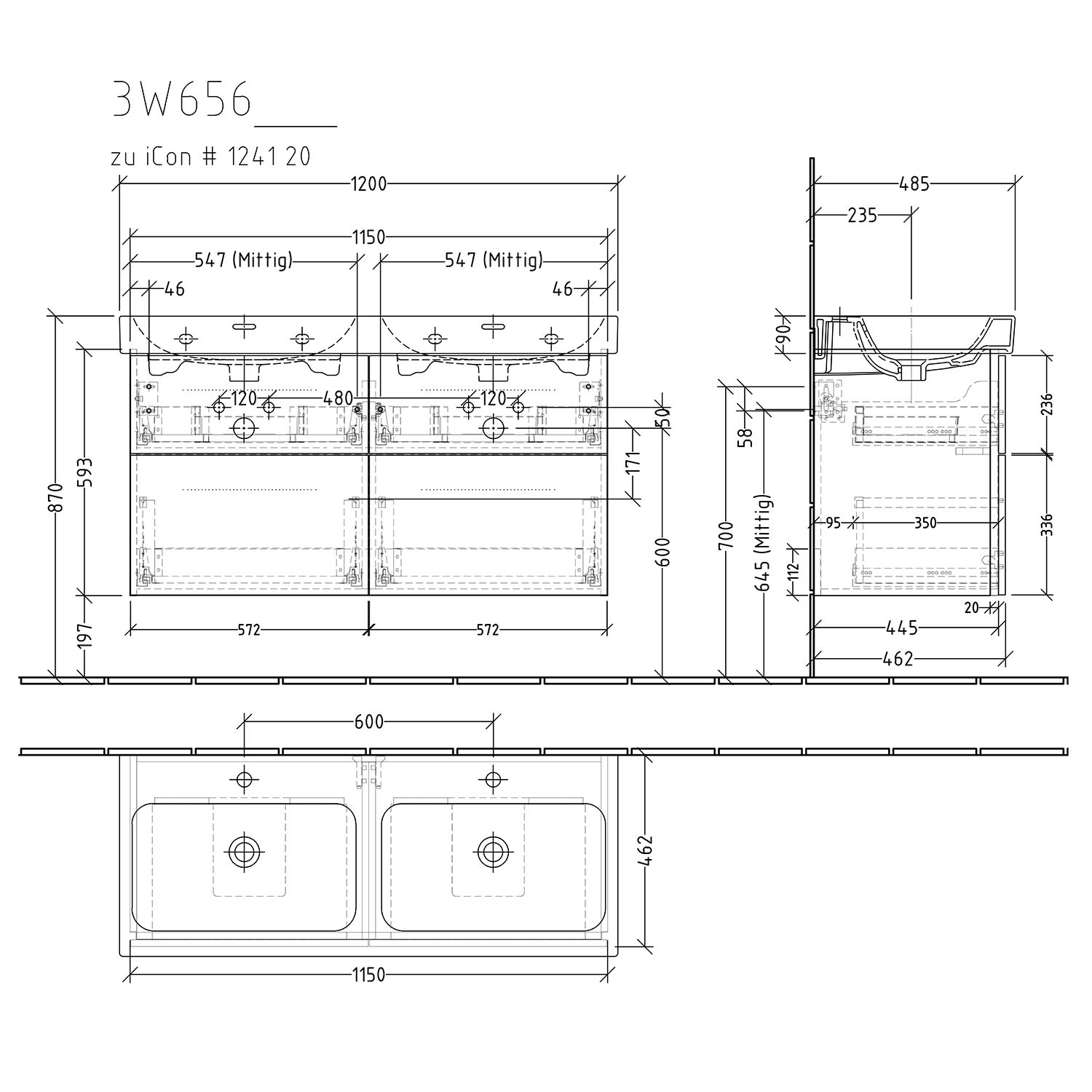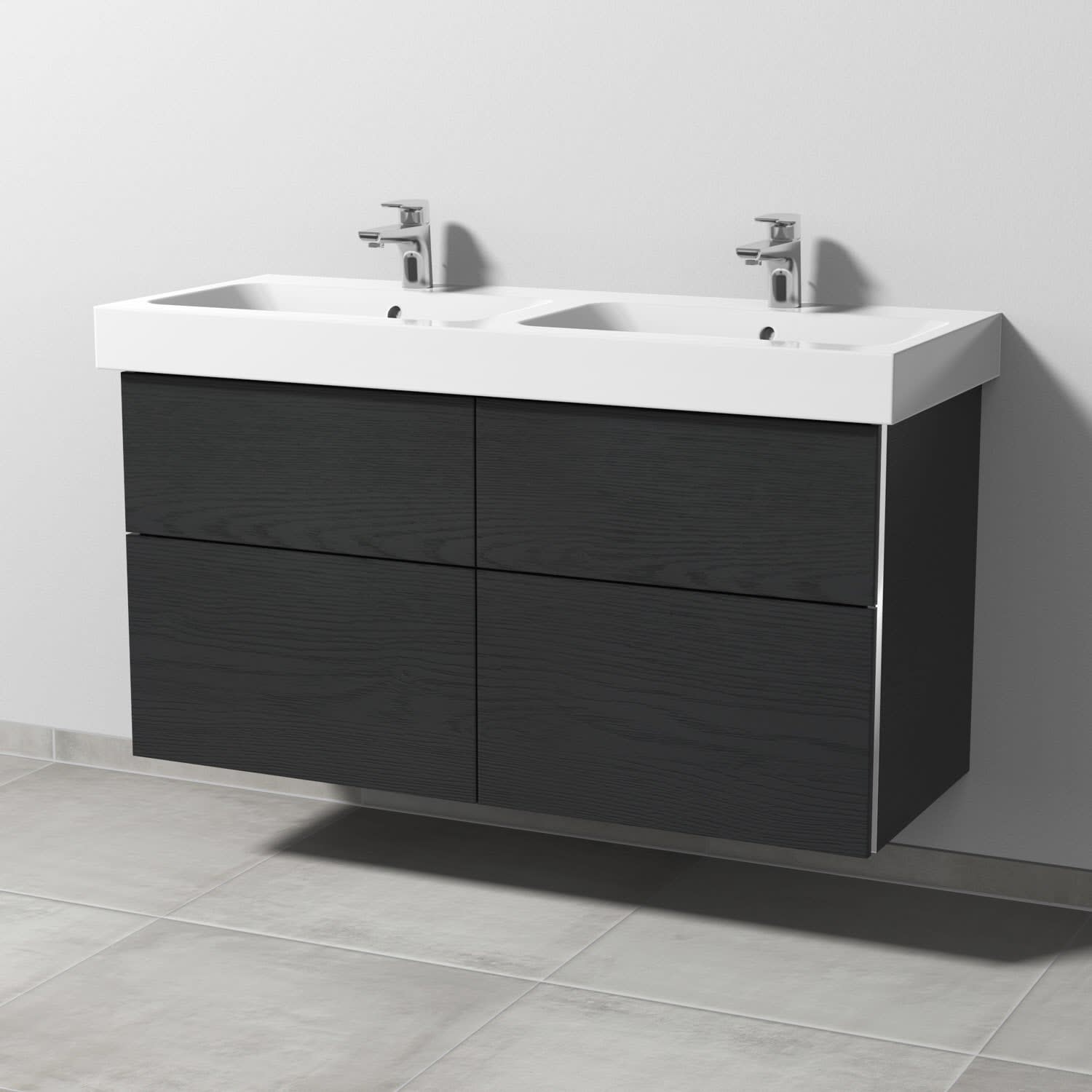 Sanipa 3way Waschtischunterbau für Keramik-Doppelwaschtisch iCon 120 cm, 4 Auszüge mit Griffleisten
