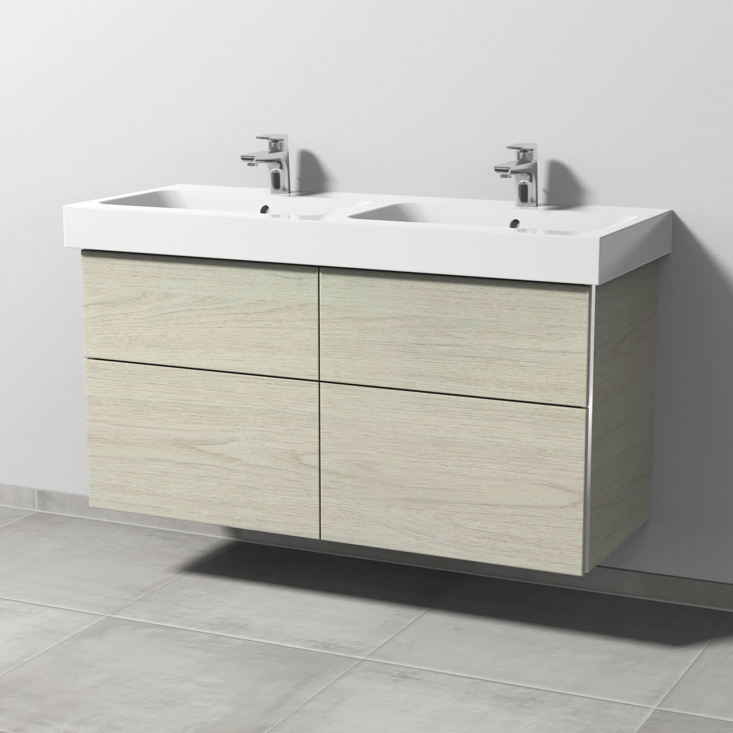Sanipa 3way Waschtischunterbau für Keramik-Doppelwaschtisch iCon 120 cm, 4 Auszüge mit Griffleisten