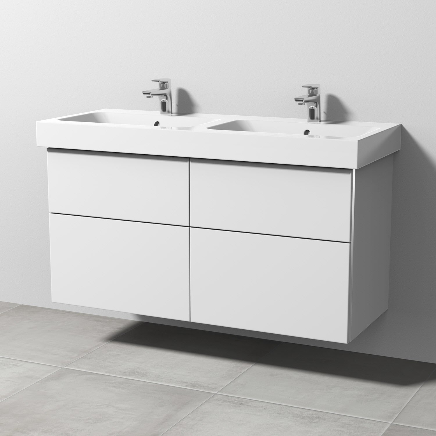 Sanipa 3way Waschtischunterbau für Keramik-Doppelwaschtisch iCon 120 cm, 4 Auszüge mit Griffleisten
