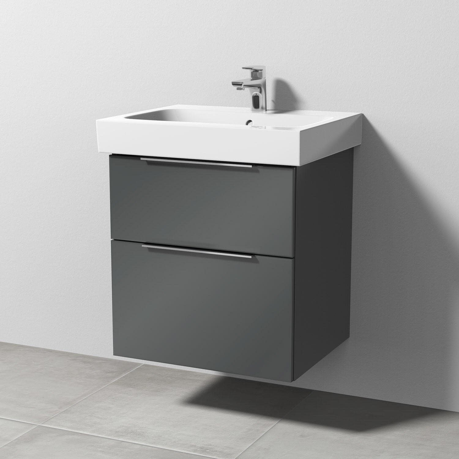 Sanipa 3way Waschtischunterbau für Keramik-Waschtisch iCon 60 cm, 2 Auszüge mit Aufsatzgriff