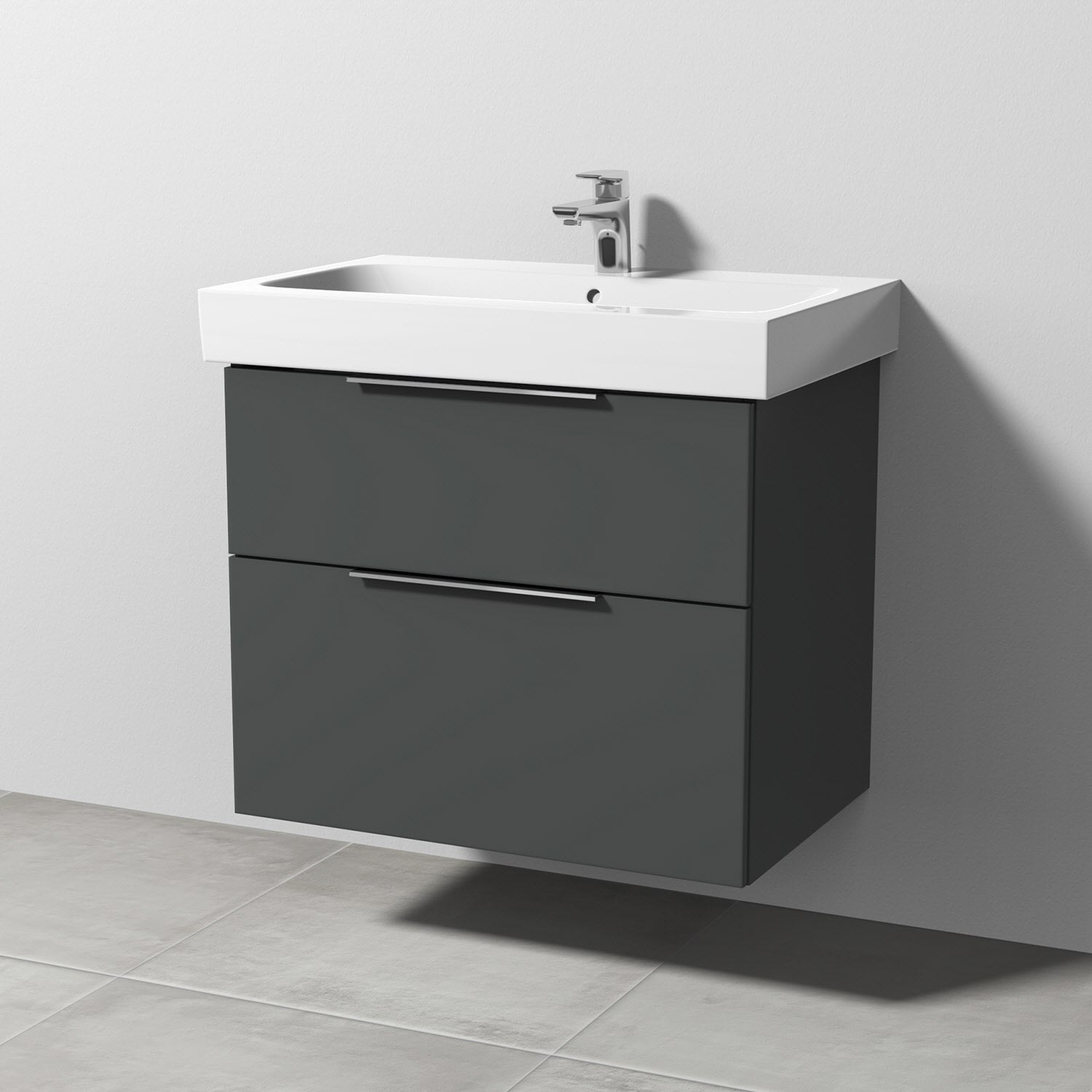 Sanipa 3way Waschtischunterbau für Keramik-Waschtisch iCon 75 cm, 2 Auszüge mit Aufsatzgriff