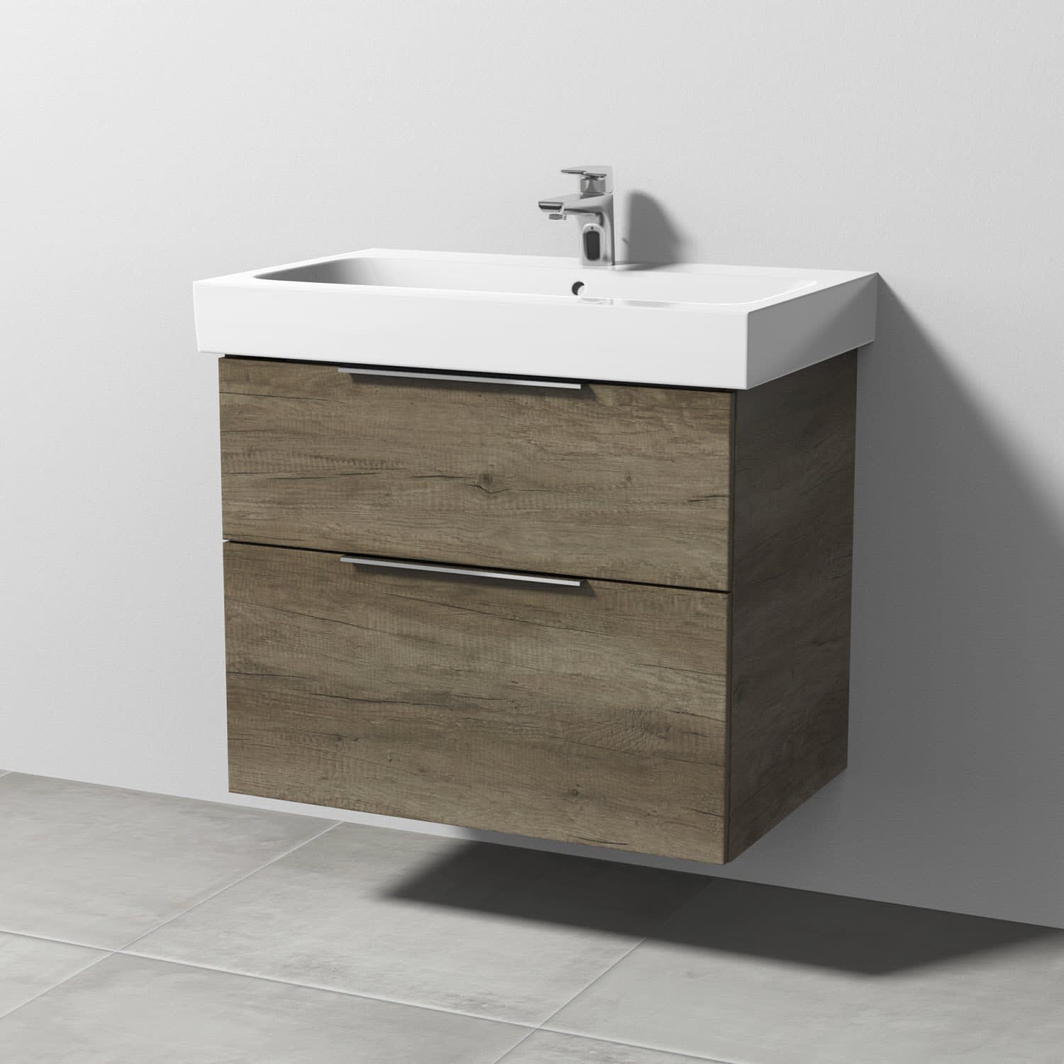 Sanipa 3way Waschtischunterbau für Keramik-Waschtisch iCon 75 cm, 2 Auszüge mit Aufsatzgriff