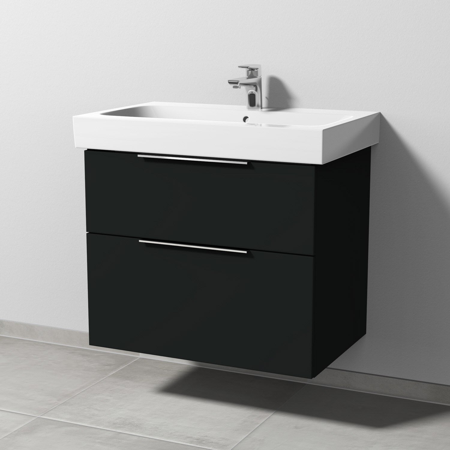 Sanipa 3way Waschtischunterbau für Keramik-Waschtisch iCon 75 cm, 2 Auszüge mit Aufsatzgriff