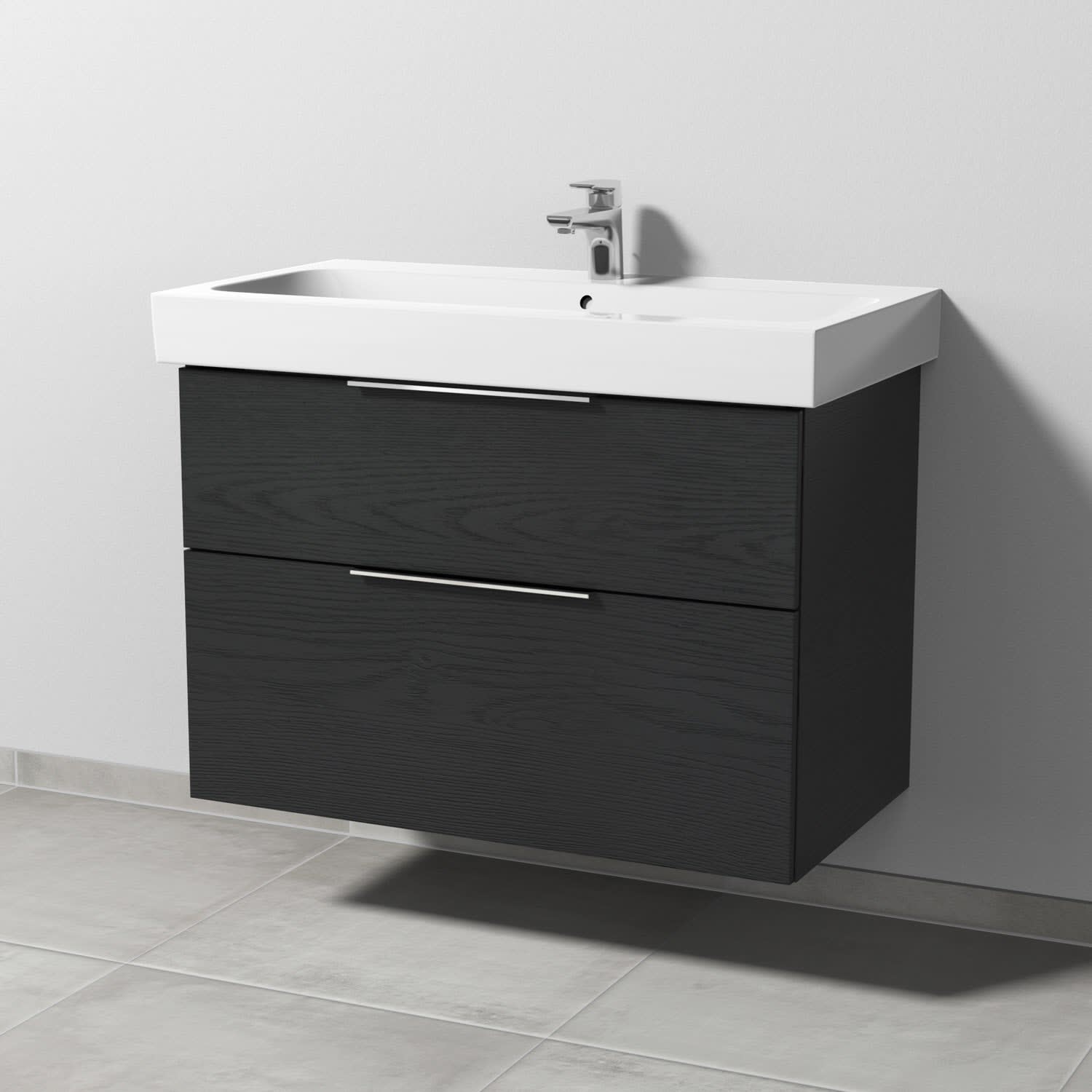 Sanipa 3way Waschtischunterbau für Keramik-Waschtisch iCon 90 cm, 2 Auszüge mit Aufsatzgriff