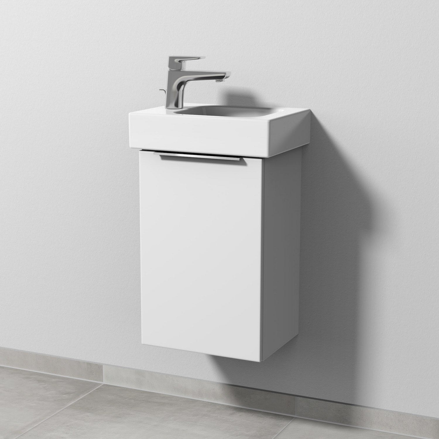 Sanipa 3way Waschtischunterbau für Keramik-Waschtisch iCon 38 cm, 1 Tür, Anschlag links, mit Aufsatzgriff