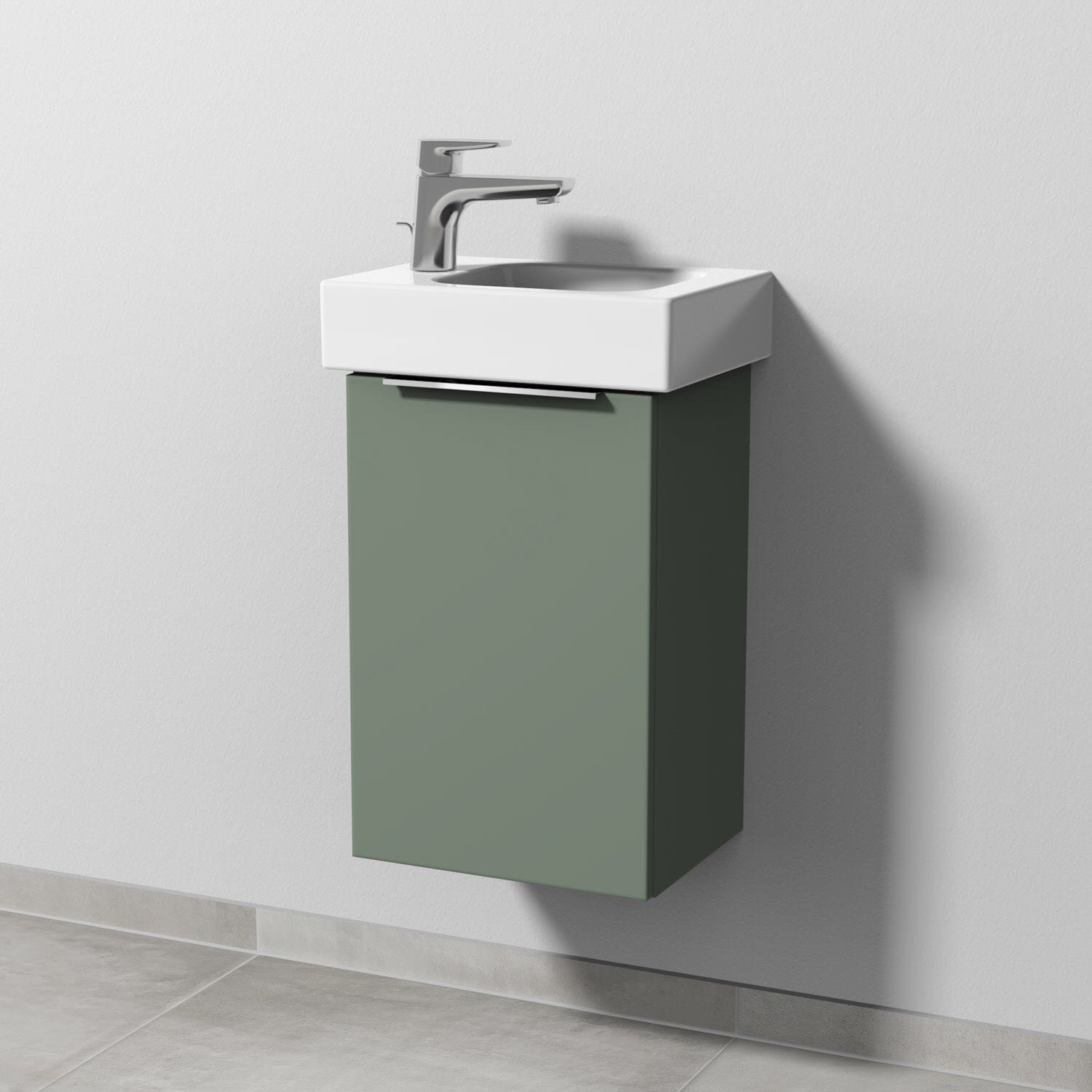 Sanipa 3way Waschtischunterbau für Keramik-Waschtisch iCon 38 cm, 1 Tür, Anschlag links, mit Aufsatzgriff