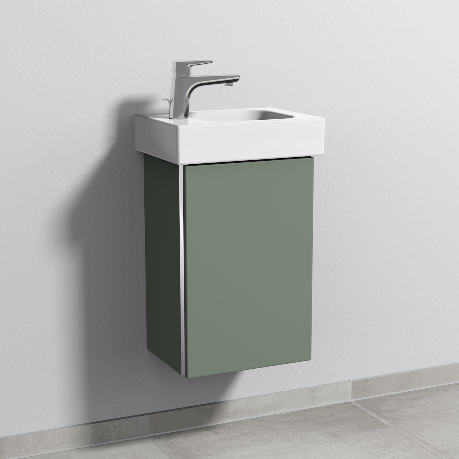 Sanipa 3way Waschtischunterbau für Keramik-Waschtisch iCon 38 cm, 1 Tür, Anschlag rechts, mit Griffleiste