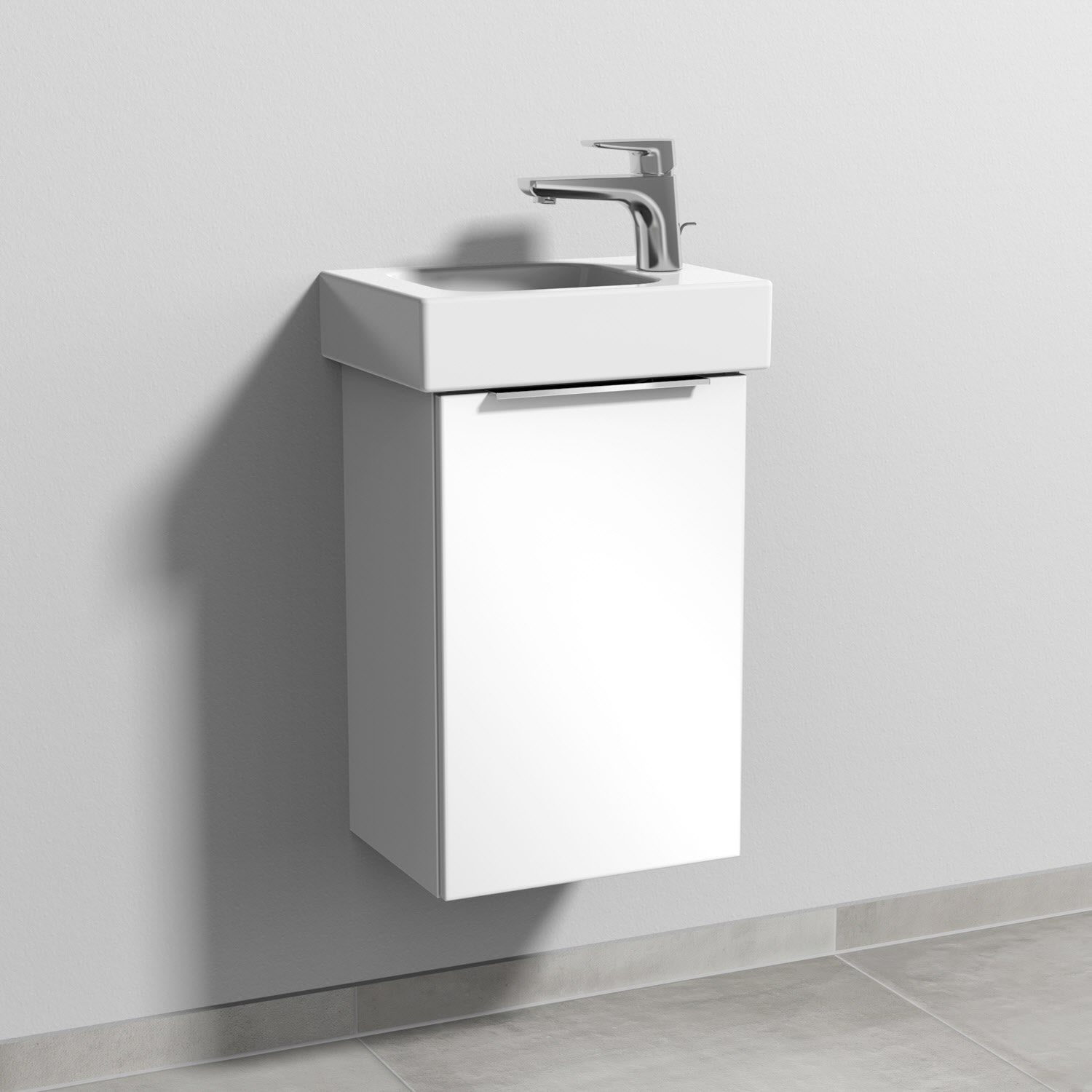 Sanipa 3way Waschtischunterbau für Keramik-Waschtisch iCon 38 cm, 1 Tür, Anschlag rechts, mit Aufsatzgriff