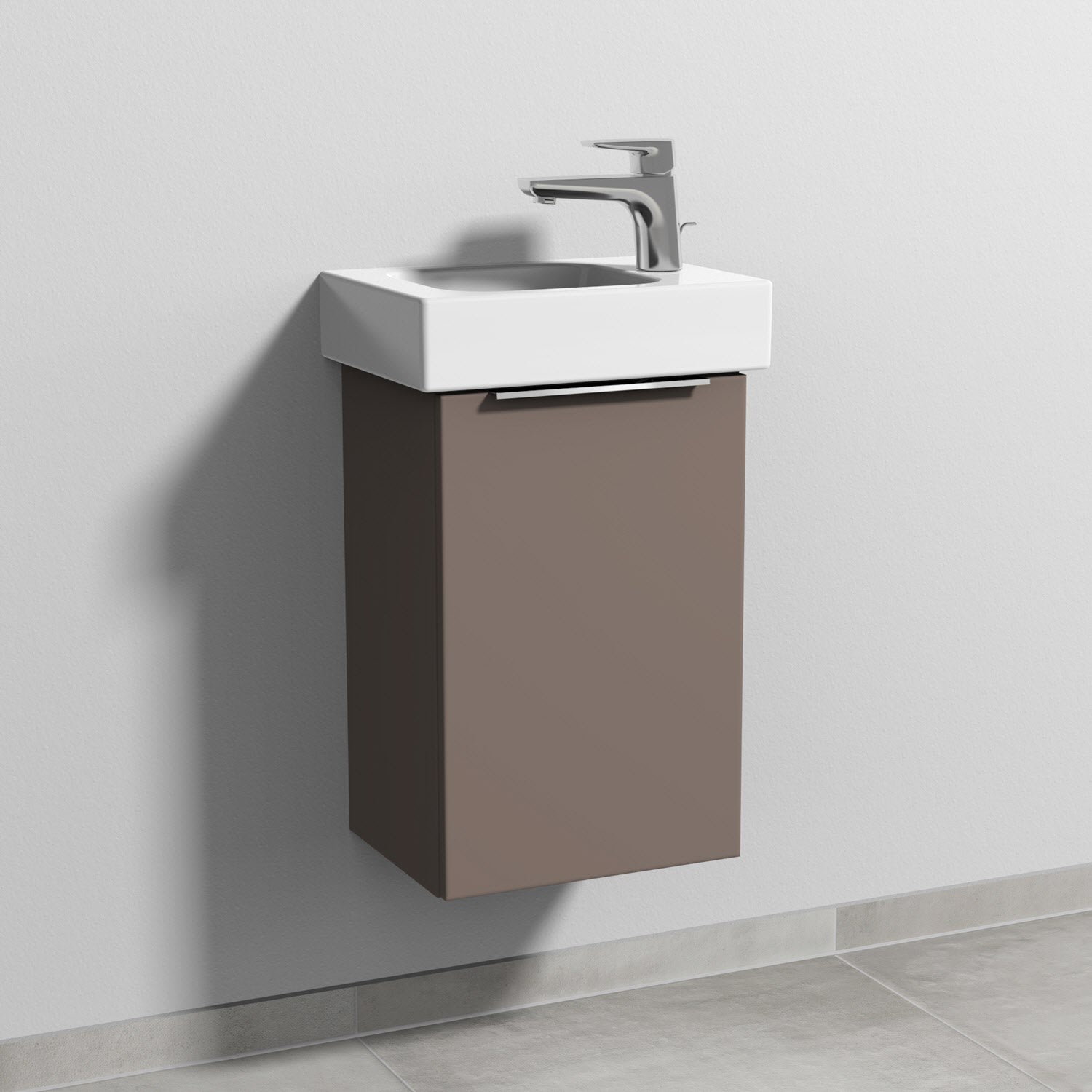 Sanipa 3way Waschtischunterbau für Keramik-Waschtisch iCon 38 cm, 1 Tür, Anschlag rechts, mit Aufsatzgriff