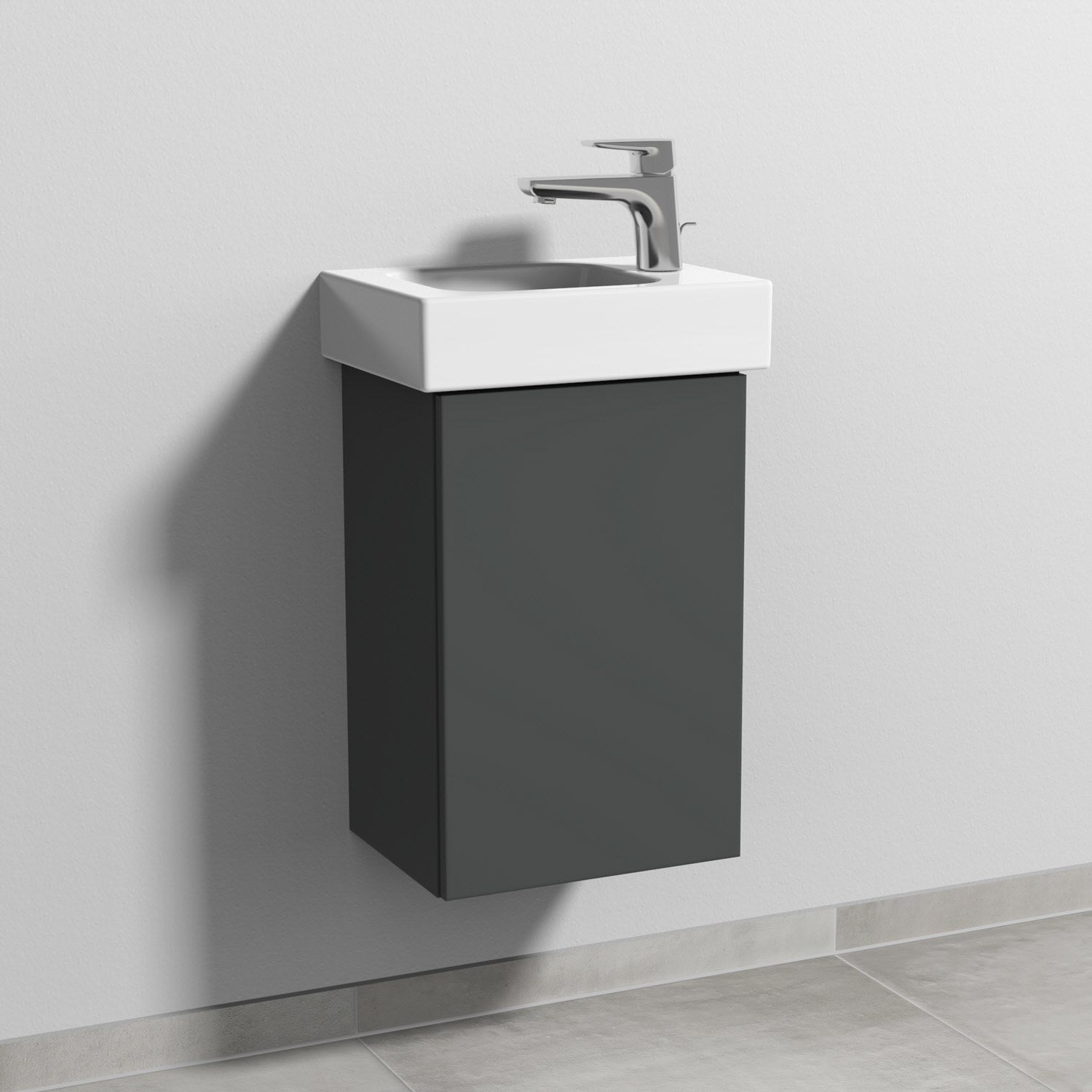 Sanipa 3way Waschtischunterbau für Keramik-Waschtisch iCon 38 cm, 1 Tür, Anschlag rechts, mit Push to open