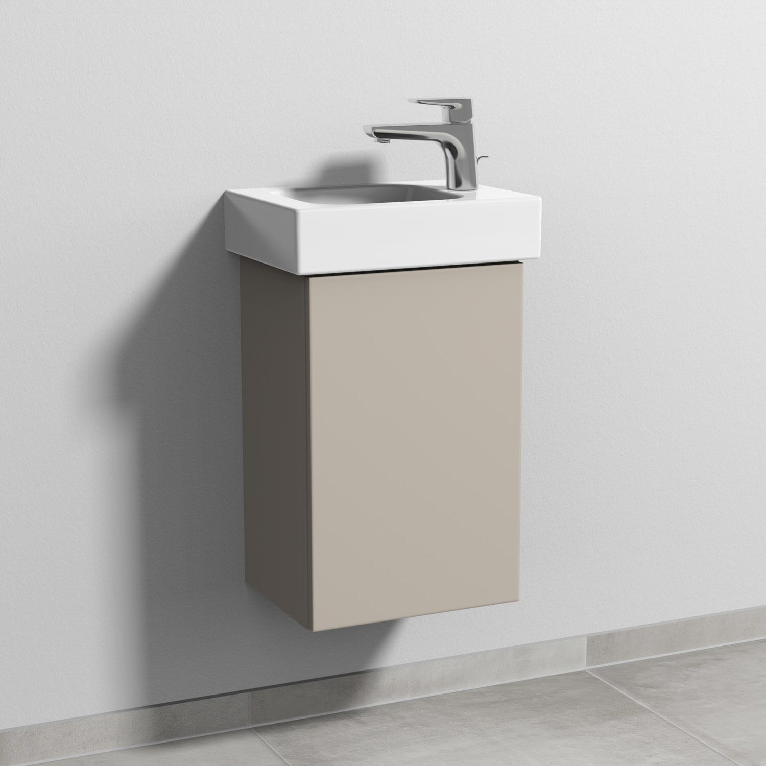 Sanipa 3way Waschtischunterbau für Keramik-Waschtisch iCon 38 cm, 1 Tür, Anschlag rechts, mit Push to open