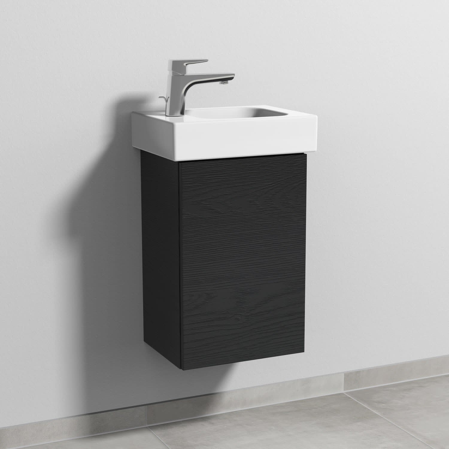 Sanipa 3way Waschtischunterbau für Keramik-Waschtisch iCon 38 cm, 1 Tür, Anschlag rechts, mit Push to open